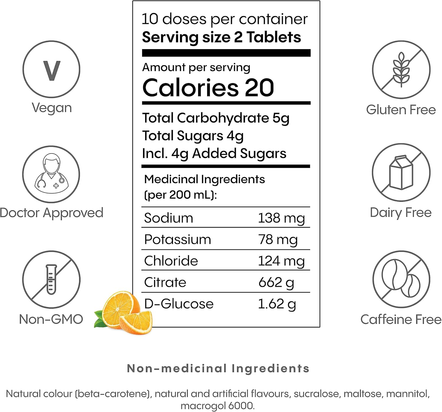 Hydralyte 泡騰電解質片 - 橙味 20 片 + HydraLyte 電解質粉,檸檬水口味(12 份)