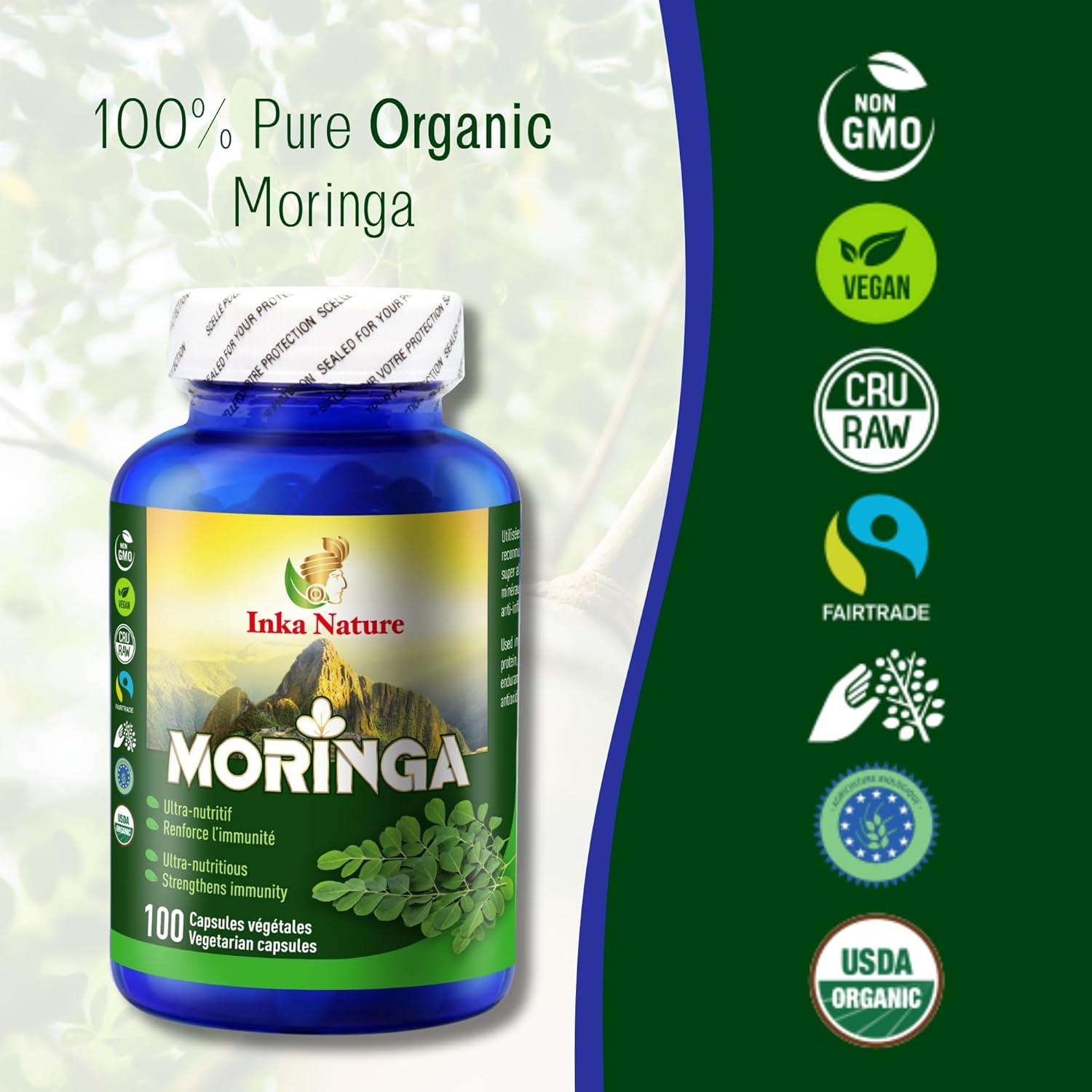INKA NATURE 辣木,100 粒素食膠囊 - 超營養,非基因改造 - 純辣木葉增強免疫力 - 有機成分 - 素食認證 - 天然健康補充劑
