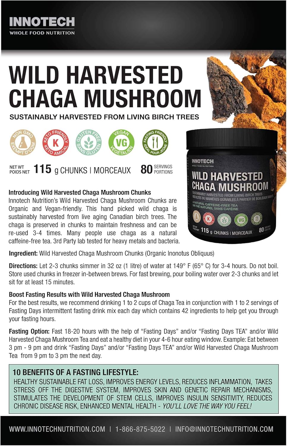 Innotech Nutrition 野生採摘白樺茸塊 - 115 克