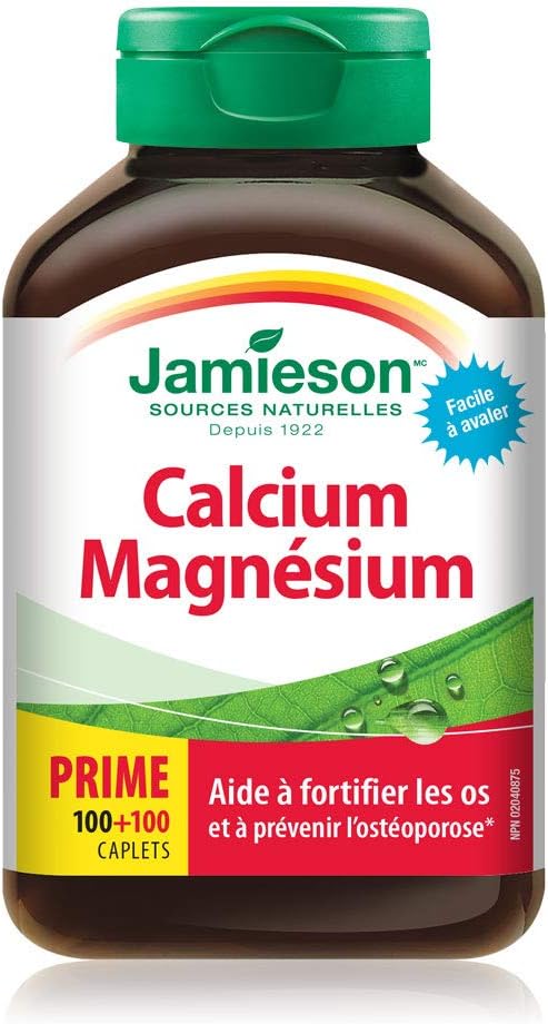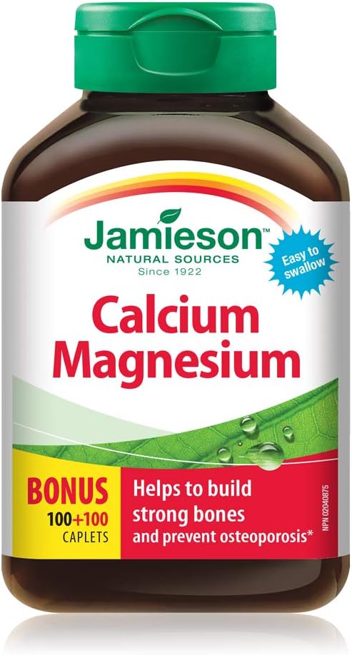 Jamieson 鈣 333 毫克,含鎂 167 毫克,高吸收率,支持骨骼健康和肌肉功能,有助於預防骨質疏鬆和骨質流失。易吞嚥,非基因改造,無麩質,200 粒膠囊,加拿大製造