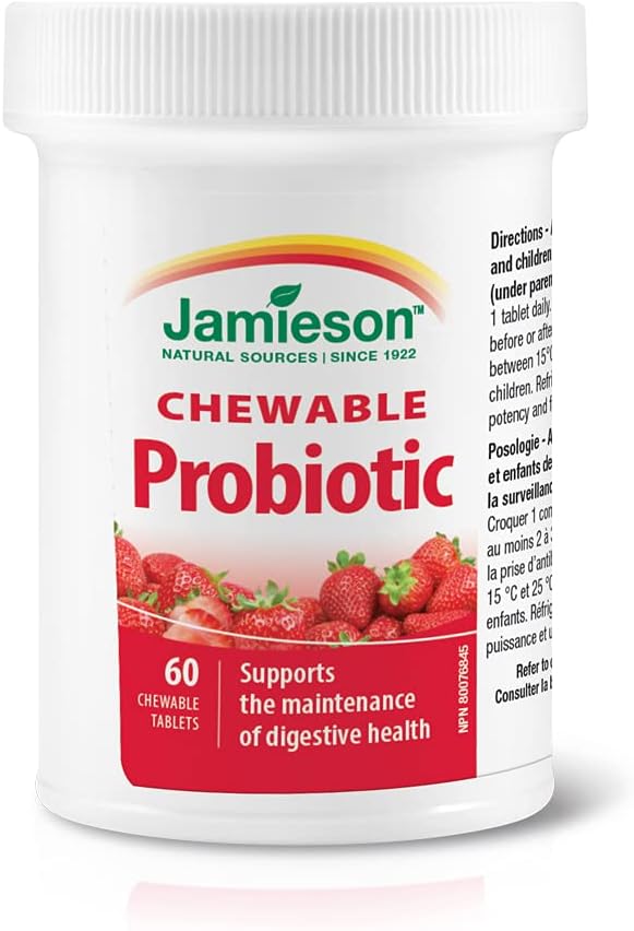 Jamieson 咀嚼益生菌 20 億活性細胞 - 天然草莓味和鎂軟糖 - 蔓越莓葡萄味,60 粒(1 包)