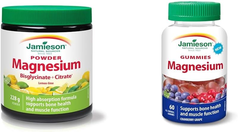 Jamieson 雙甘氨酸鎂加檸檬酸鹽粉 | 鎂軟糖(檸檬青檸味和蔓越莓葡萄味)