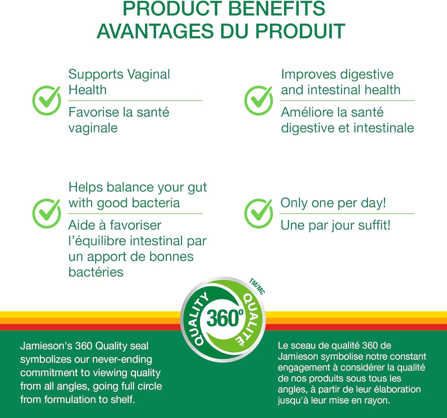 Jamieson 女性益生菌複合物 70 億,45 粒素食膠囊和 250 毫克鎂超強效 - 超值裝
