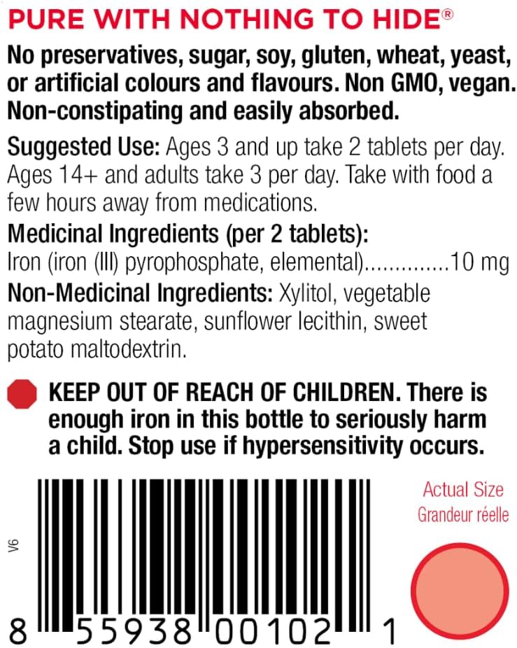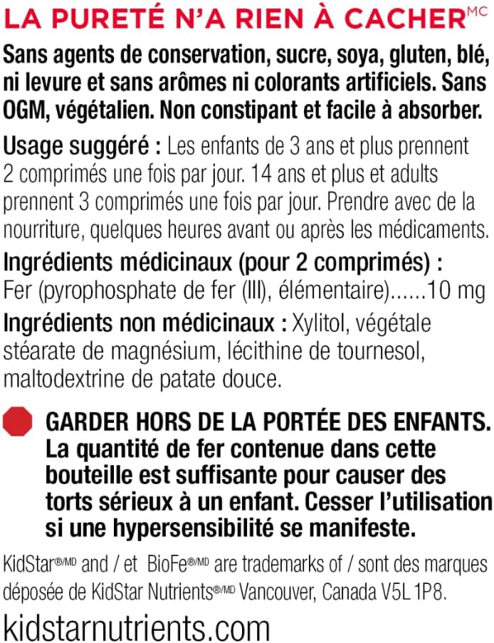 Kidstar Nutrients - BioFe 純鐵 5 毫克,60 片咀嚼片,30 天用量 - 有助於預防缺鐵性貧血 - 不會引起胃部不適和便秘 - 純素、非基因改造、無麩質和無糖