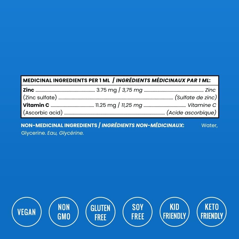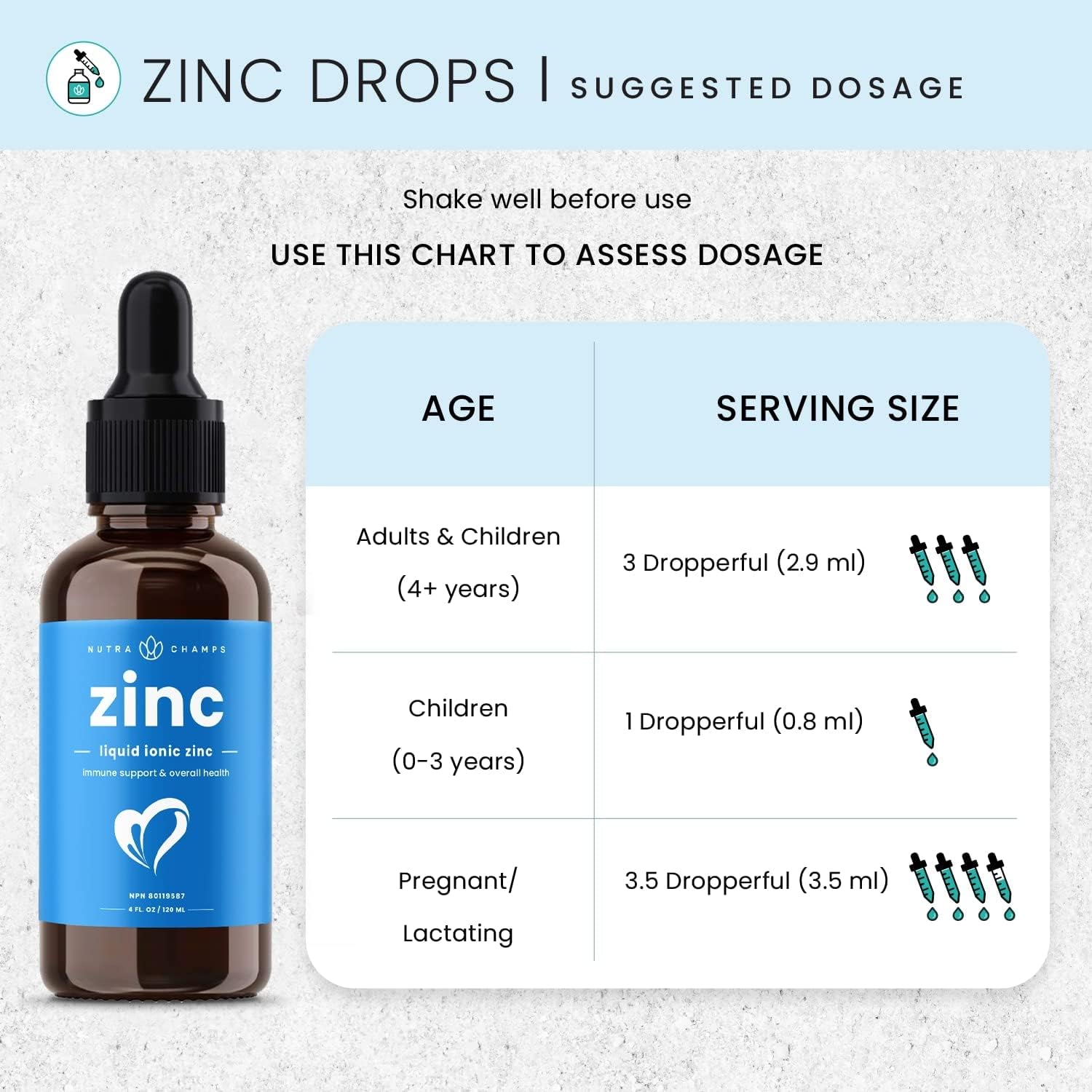 兒童及成人適用液體鋅 | 有機離子鋅滴劑,添加維生素C | 元素鋅補充劑 | 免疫、心臟、大腦和皮膚健康 | 無糖硫酸鋅液體 | 純素和非基因改造