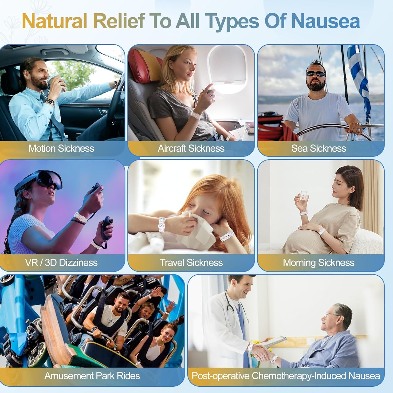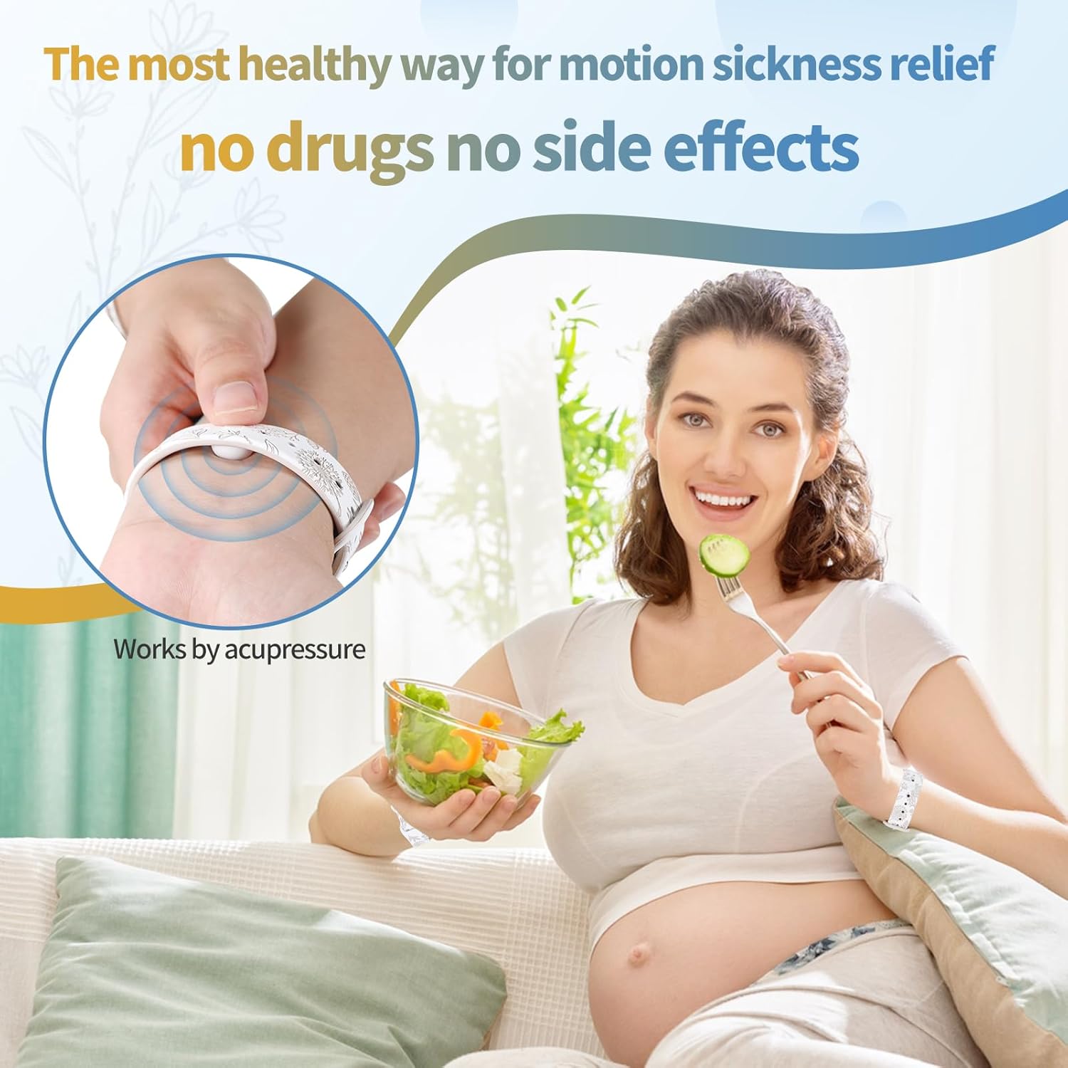 MEIYYJ 暈動病手環,防噁心自然緩解腕帶,可調節指壓噁心腕帶,適用於旅行時緩解噁心、頭痛、失眠、焦慮、晨吐 - 白色/星光色…