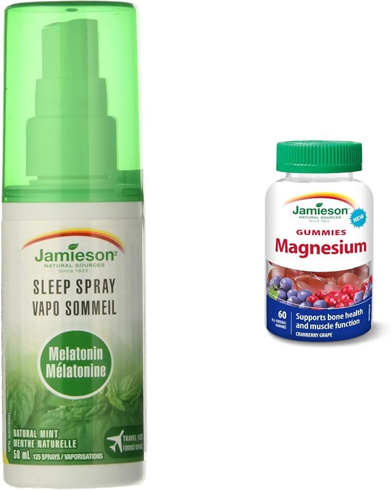 褪黑激素 1 毫克睡眠噴霧 - 天然薄荷口味 | Jamieson 鎂軟糖 - 蔓越莓葡萄口味(60 顆)