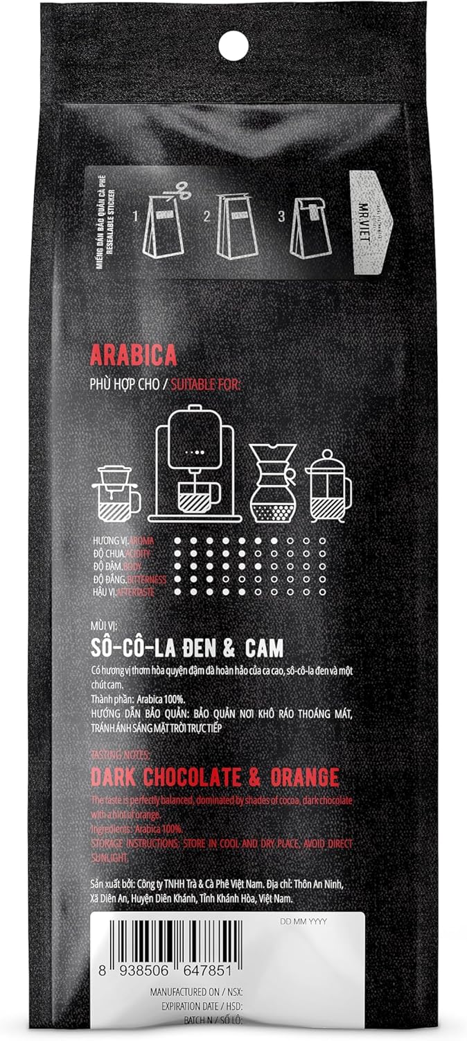 越南阿拉比卡先生咖啡,絕非尋常之選。這款100%阿拉比卡咖啡產自越南首屈一指的高地大叻地區的小農場,其獨特的風味源自於海拔、火山土壤以及緩慢的日曬處理工藝。中度烘焙以保持咖啡的清澈度和深度,入口時帶有淡淡的柑橘、柔和的可可香氣,並伴隨乾淨的堅果餘味。酸度低,口感順滑,香氣馥鬱而不濃烈,是黑咖啡愛好者和加奶咖啡的理想之選。口感:柑橘皮香 · 烤杏仁 · 可可