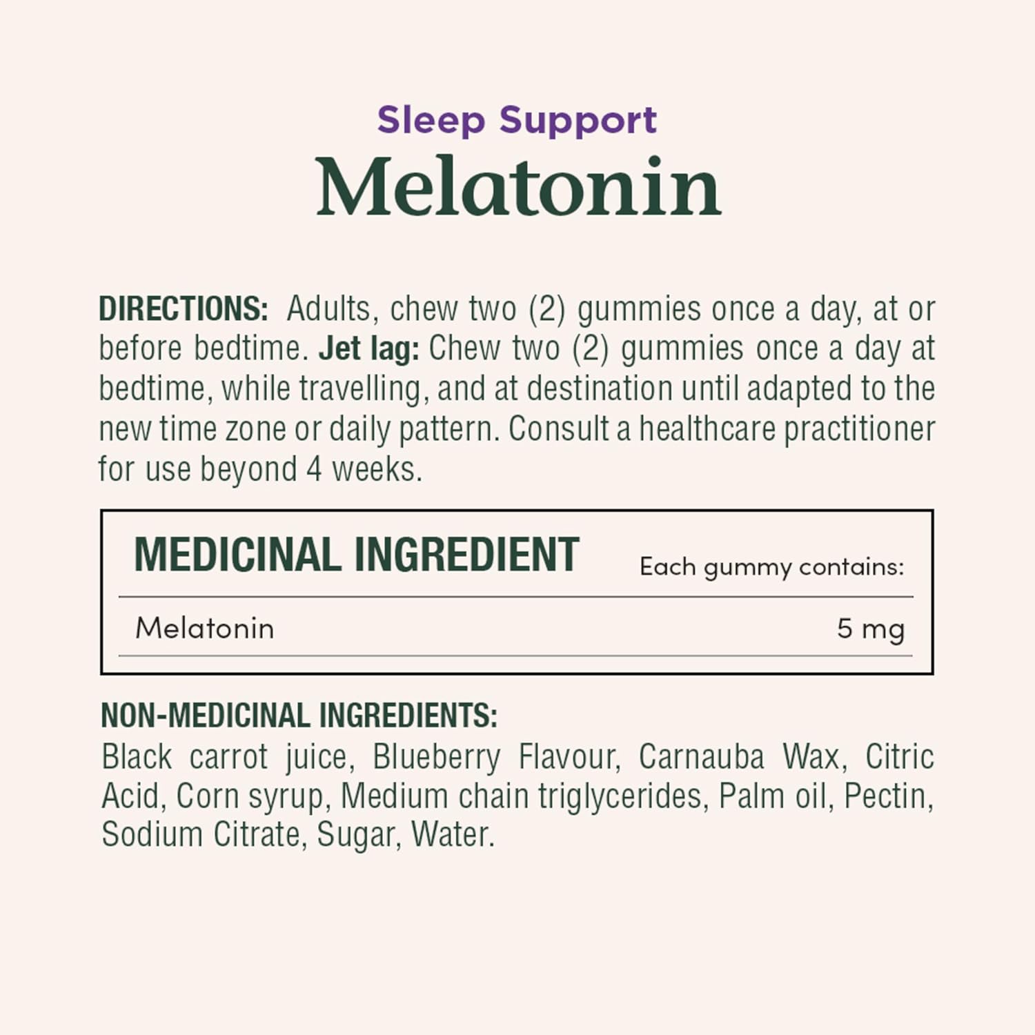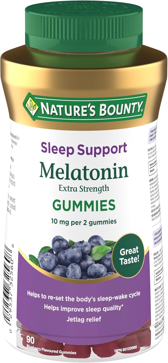 40 多年來,NATURE'S BOUNTY 一直以您為中心,開發維生素和營養補充品。您服用維生素是因為您想幫助身體保持最佳狀態—那麼為什麼要將就任何維生素品牌?今天就試試 NATURE'S BOUNTY 吧。 NATURE'S BOUNTY 褪黑激素有助於增加睡眠不足或睡眠時間改變(例如輪班工作和時差)人群的總睡眠時間。它有助於減少入睡困難者的入睡時間,並幫助重置身體的睡眠-覺醒週期,從而預防和減輕時差的影響。每顆易於服用的素食軟糖含有 5 毫克褪黑激素以及藍莓香精、巴西棕櫚蠟、檸檬酸、濃縮葡萄汁、果膠、檸檬酸鈉、糖、木薯糖漿、植物油和水。成人每天咀嚼兩 (2) 粒軟糖。每天一次,睡前或睡前服用。緩解時差反應,建議睡前、旅途中以及到達目的地後每日服用一次,直到適應新的時區或日常規律。如需超過4週,請諮詢保健醫師。
