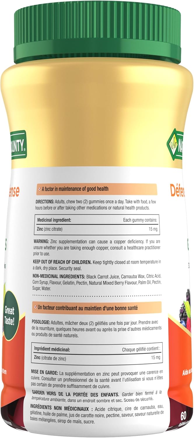 天然之寶鋅,15 毫克葡萄糖酸鋅,有助於維持免疫功能和身體健康,天然漿果味,60 粒軟糖,150 克