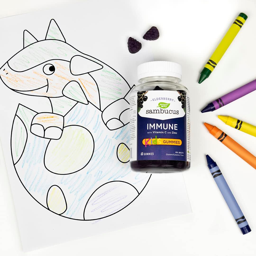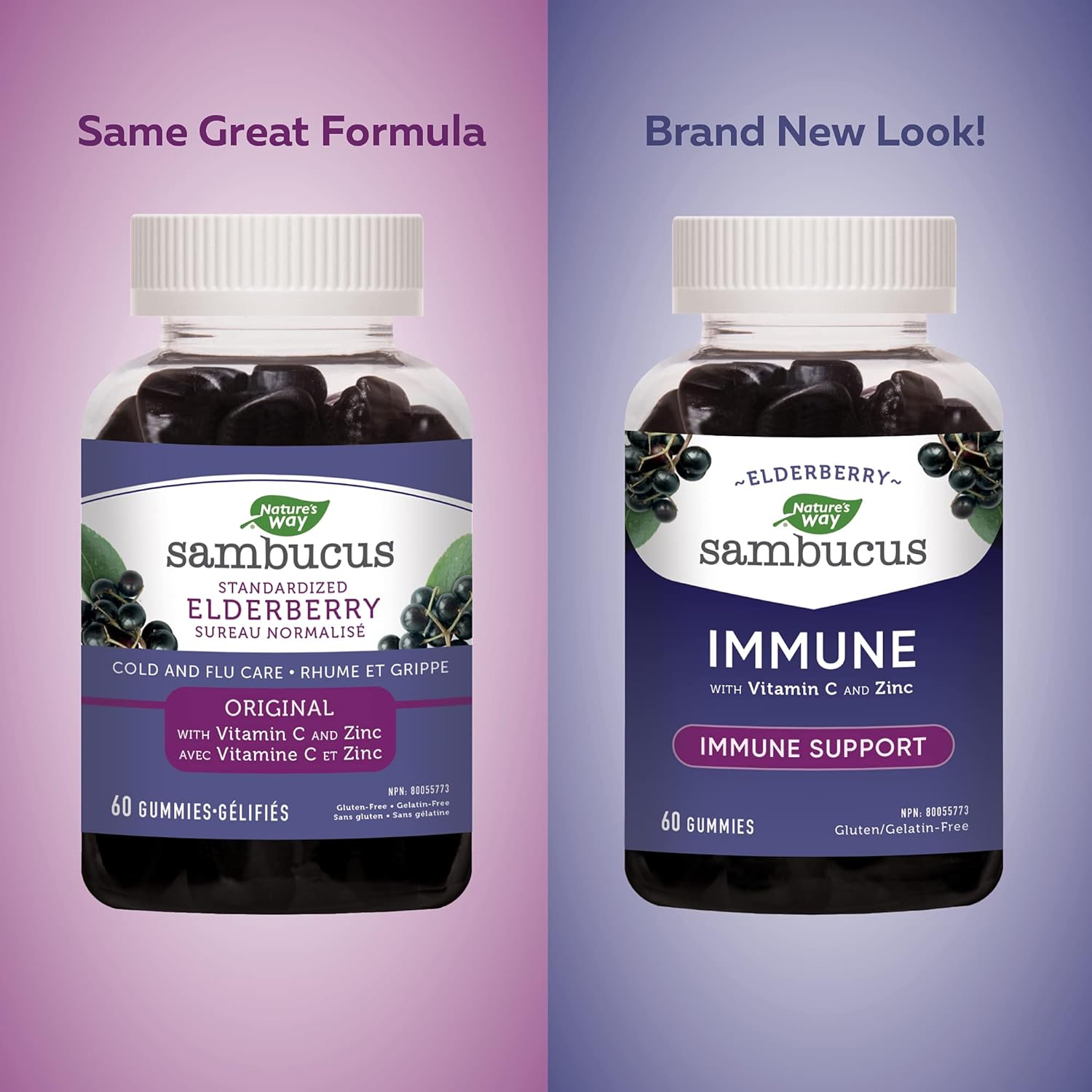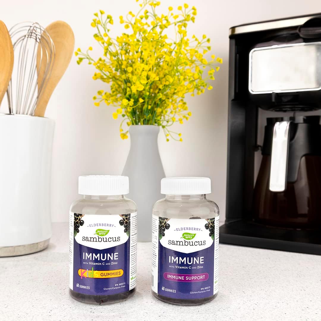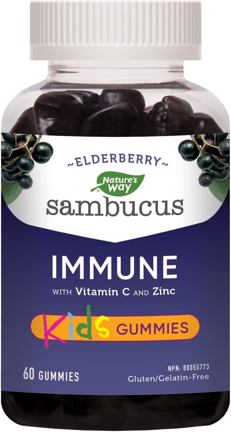 Nature's Way 接骨木免疫感冒和流感護理接骨木軟糖,維生素 C 和鋅,4 歲以上兒童適用;以及接骨木免疫原味感冒和流感護理接骨木軟糖,維生素 C 和鋅,成人和 4 歲以上兒童適用
