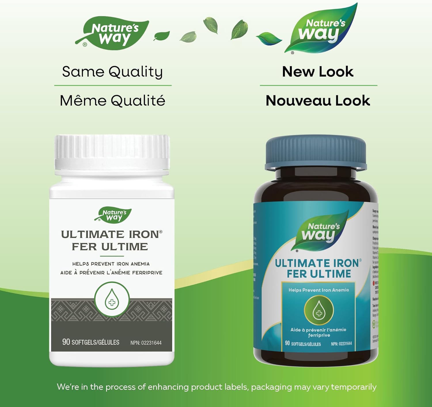 Nature's Way 終極鐵劑 - 鐵補充劑,促進紅血球生成和預防貧血 - 含葉酸、維生素 B12 和維生素 C - 90 粒軟膠囊
