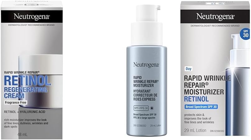 露得清快速抗皺修復視黃醇面部保濕霜,無香型,每日抗衰老面霜,含視黃醇和透明質酸,可對抗細紋、皺紋和黑斑,48 毫升使用露得清快速抗皺修復再生抗衰老霜,只需一周即可展現明顯年輕的肌膚。這款抗皺乳霜含有獨特的成分組合,可立即補水,經常使用可幫助再生、保濕和撫平肌膚。這款抗皺面頸霜的作用類似緊緻晚霜,可在短短一週內撫平細紋和魚尾紋,同時減少黑斑。這款保濕霜來自皮膚科醫生最常用的排名第一的視黃醇品牌,適合所有膚質和膚色,安全有效。它蘊含露得清最高濃度的視黃醇,經皮膚科醫生驗證,有助於對抗細紋、暗沉、皺紋和黑斑,從而對抗老化跡象。視黃醇還能持續煥發您的肌膚,可用作皺紋填充劑、暗斑修復劑和美白劑,可用於化妝後使用,也可用作眼霜,改善黑眼圈和浮腫。這款抗老臉部、頸部和眼霜有助於淡化深層皺紋,包括額頭和臉頰皺紋,使肌膚煥發年輕光彩。這款無香抗皺修復霜配方不含對羥基苯甲酸酯、礦物油和染料,可每天兩次塗抹於清潔後的臉部和頸部。使用時,取珍珠大小的量,均勻塗抹於肌膚,輕柔按摩至完全吸收。露得清抗老視黃醇乳霜SPF 30,快速抗皺修補保濕霜,29毫升。使用露得清抗老視黃醇乳霜SPF 30,快速抗皺修復,在滋潤和保護肌膚的同時,還能有效對抗老化跡象。這款速效保濕霜只需一週即可顯著淡化頑固皺紋,包括魚尾紋、額頭紋和臉頰紋。它還能撫平細紋和紋理,提亮膚色,均勻膚色。本產品配方蘊含速效視黃醇SA及葡萄糖複合物,讓肌膚倍感光滑,煥發年輕光彩。視黃醇SA持續更新肌膚,幫助快速撫平皺紋,淡化老人斑。獨家配方葡萄糖複合物可加速肌膚表面活性,快速見效。這款乳液採用29毫升泵式瓶裝。
