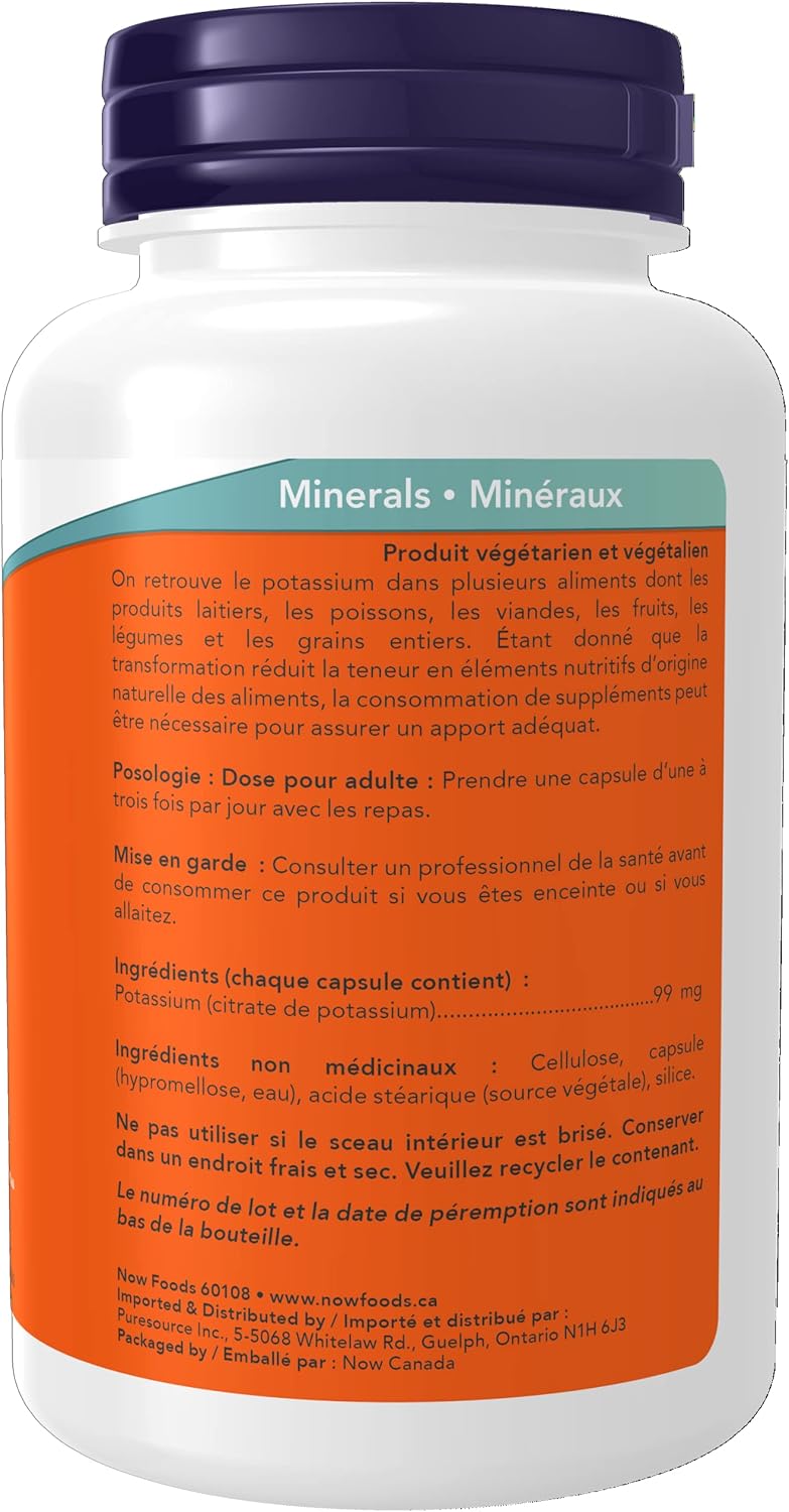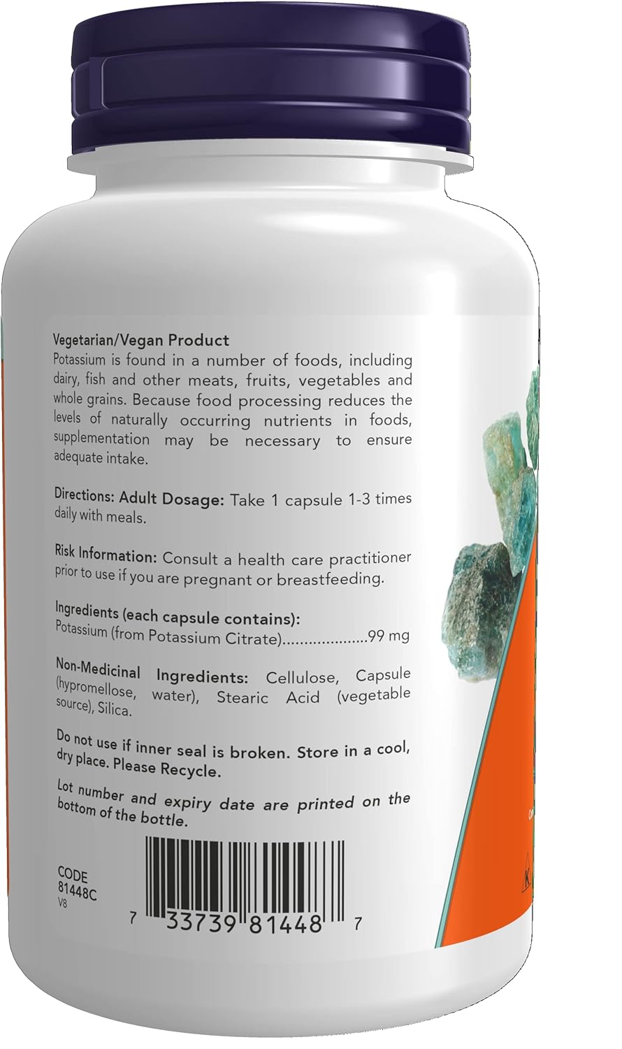 Now Foods 檸檬酸鎂 200 毫克 100 片鎂是一種對能量產生和代謝、肌肉收縮、神經衝動傳遞和骨骼礦化至關重要的礦物質。 *它是約 300 種酵素的必需輔助因子。 *這些酵素催化的反應包括脂肪酸合成、蛋白質合成和葡萄糖代謝。 *鎂的狀態對於透過影響副甲狀腺來調節鈣平衡也很重要。 Now Foods 檸檬酸鉀 99 毫克 180 粒鉀是一種必需礦物質,廣泛分佈於各種食物來源中,尤其在水果和蔬菜中的含量很高。鉀對於維持正常的全身和細胞液水平以及維持酸鹼平衡至關重要。 *它對於正常的肌肉收縮、維持健康的心臟功能以及神經衝動的傳遞也是必需的。 *檸檬酸鉀是一種吸收良好且生物利用度高的鉀形式。