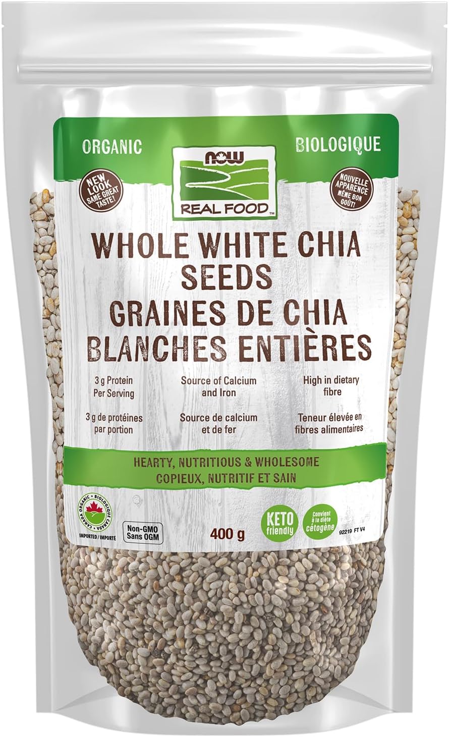NOW Real Food,有機白奇亞籽,必需脂肪酸和纖維來源,非基因改造認證,400克