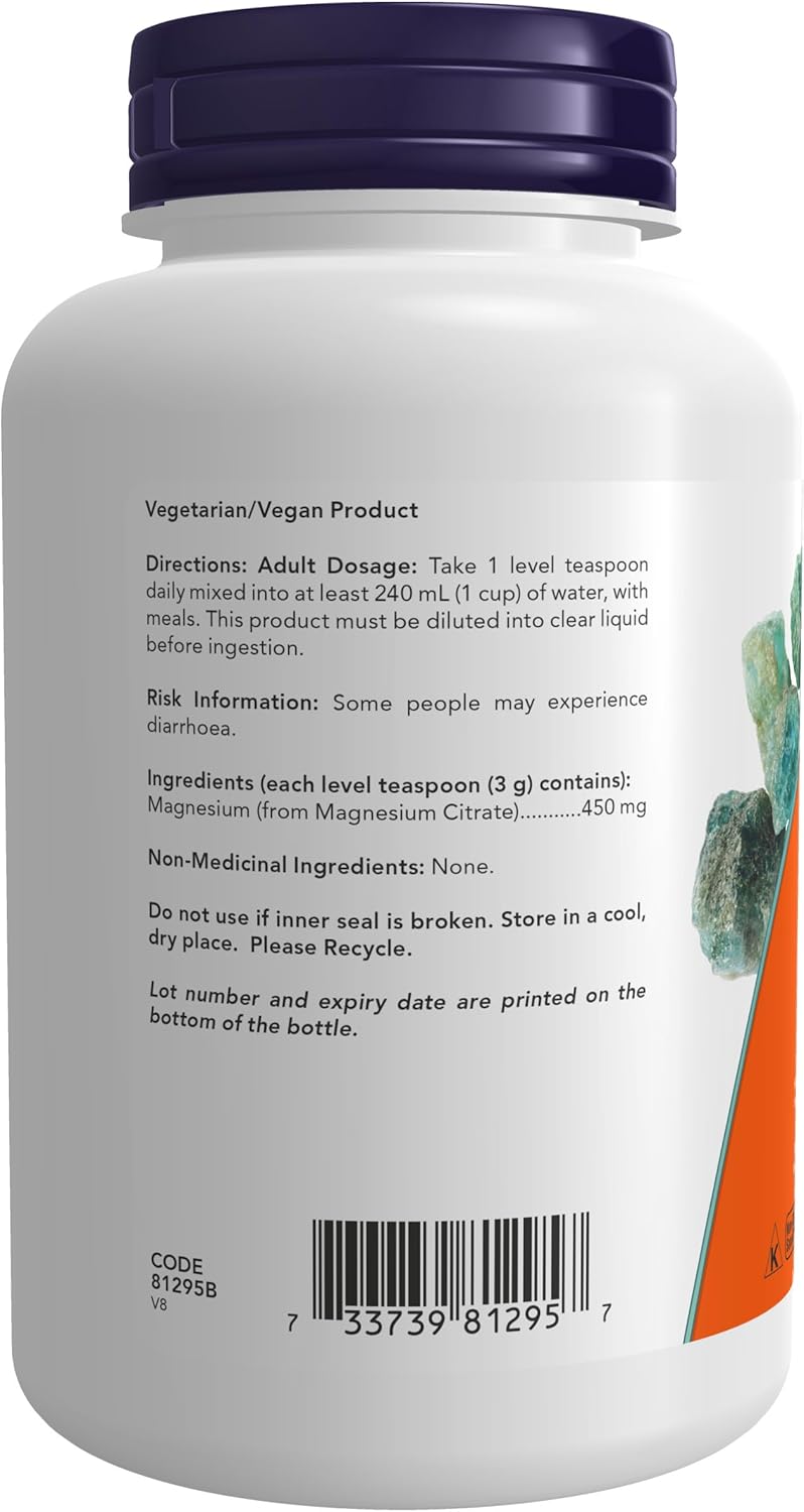 NOW Supplements,檸檬酸鎂純粉,酵素功能*,神經系統支持,227克