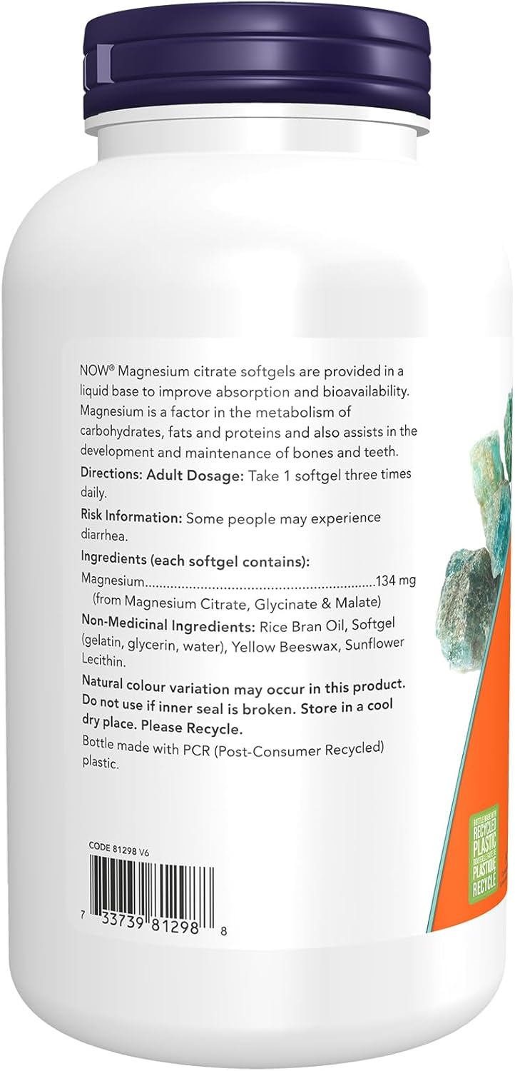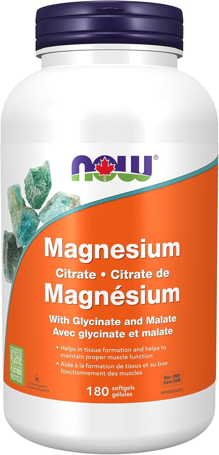 NOW Supplements, 檸檬酸鎂,含甘氨酸鹽和蘋果酸鹽,神經系統支持,180 粒軟膠囊