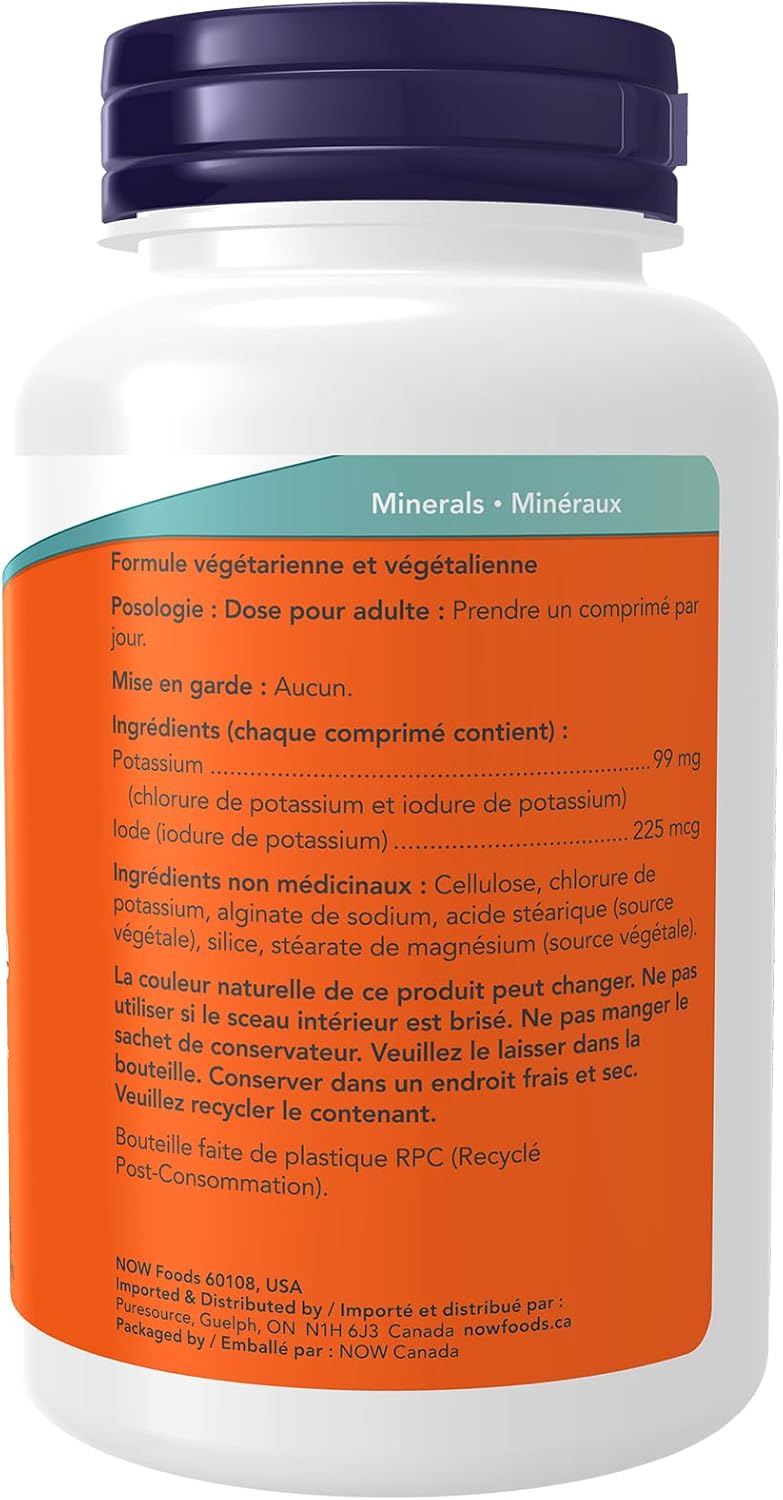 碘化鉀 (KI) 是一種含碘的化合物,碘是維持甲狀腺正常功能所必需的營養素。碘以碘化物的形式存在,是甲狀腺激素的重要組成部分,而甲狀腺激素負責調節細胞代謝和能量生成。 NOW 鉀加碘片每片含 99 毫克鉀和 5 毫克鈉。這些礦物質會影響體內的水分平衡。我們的 NOW 天然有機補充劑能夠有效確保您和家人獲得每日所需的維生素、礦物質和營養素,從而保持最佳健康狀態。自 2000 年以來,NOW 品牌一直致力於支持加拿大人,致力於提供能夠幫助人們過上更健康生活的產品。加拿大 70% 的 NOW 產品在安大略省圭爾夫市生產或包裝,在全國各地僱用了數百名加拿大員工。 NOW 每月進行 31,000 次品質檢測,確保您以最優惠的價格獲得最高品質的補充劑。我們承諾-標籤上的內容與瓶中的內容完全一致。