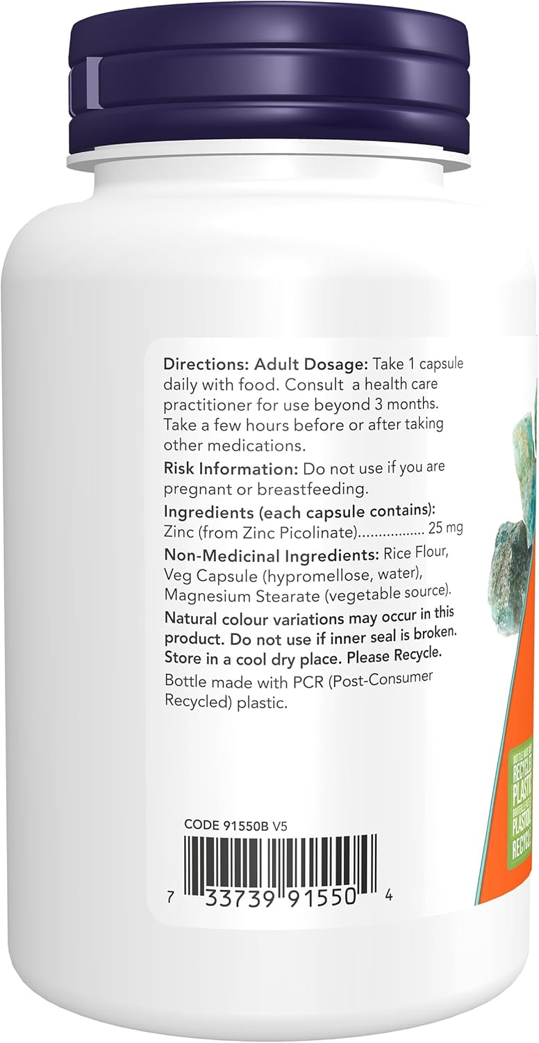 NOW Supplements, 吡啶甲酸鋅 50 毫克,支持酵素功能,增強免疫力,100 粒素食膠囊