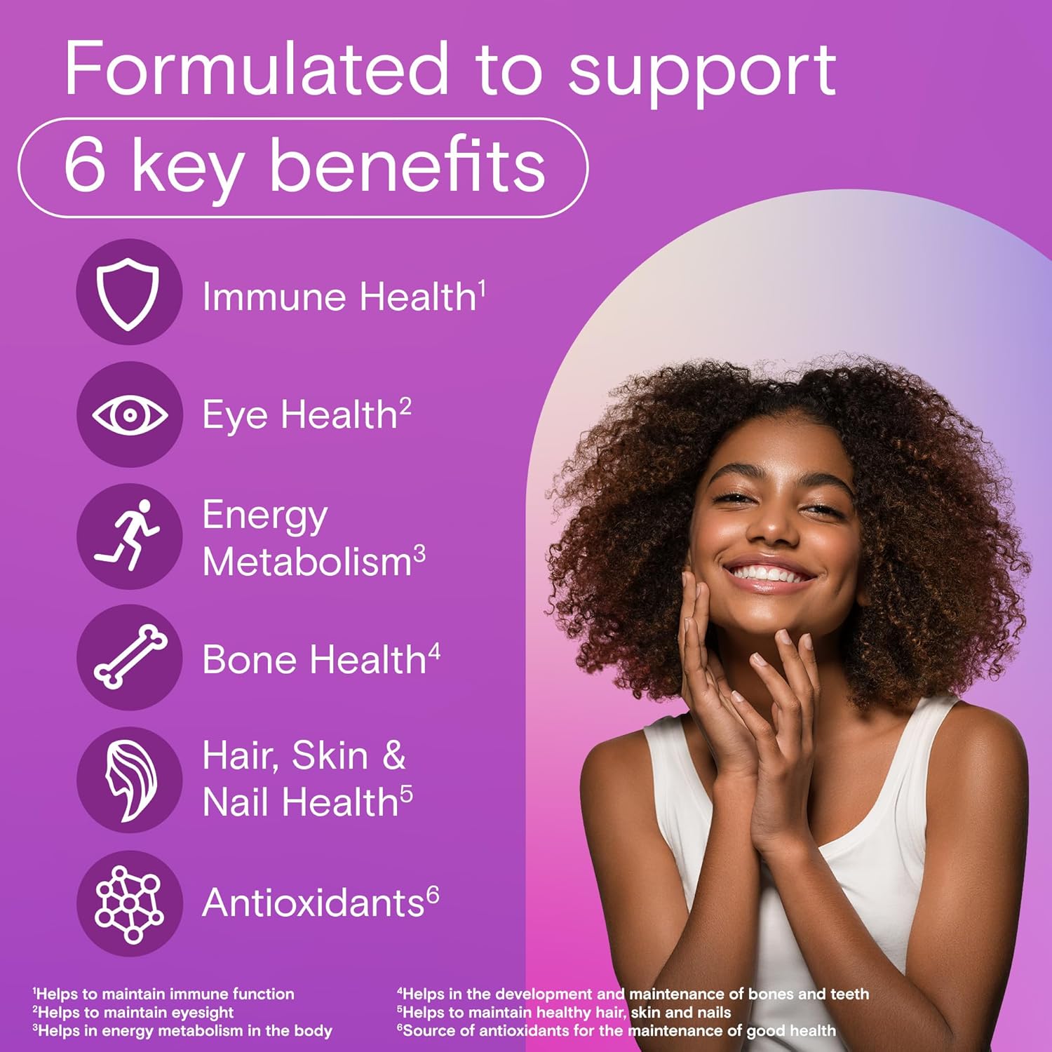 每日一片女士複合維生素軟糖 - 每日補充女性所需維生素軟糖,含維生素 A、C、D 和鋅,有助於增強免疫功能,含生物素,有益於頭髮、皮膚和指甲健康,60 粒軟糖