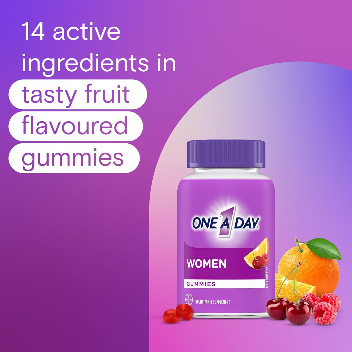 營養學看似複雜,但無需擔心服用維生素!使用 One A Day 女性複合維生素軟糖,由內而外過上最好的生活。專為她配製的軟糖維他命。讓我們面對現實:男性和女性的營養需求是不同的,隨著我們經歷這個稱為生命的奇妙旅程,它們會改變。這種女性每日複合維生素含有多種必需維生素和礦物質,旨在幫助支持她:骨骼健康 - 幫助骨骼和牙齒的發育和維持免疫健康 - 幫助維持免疫功能健康的皮膚、頭髮和指甲 - 保持健康的頭髮、皮膚和指甲新陳代謝 - 幫助身體的能量代謝眼睛健康 - 有助於支持眼睛健康抗氧化劑對健康、B12 - 抗氧化劑的來源,有助於維持健康的E;葉酸、生物素和菸鹼酸,One A Day女士複合維生素軟糖添加了14種關鍵的必需維生素和礦物質,有助於維持您的身體健康。如果您不遵循均衡的飲食計劃,單靠食物可能無法獲得所需的維生素和礦物質。服用One A Day女士複合維生素軟糖是幫助您展現最佳狀態的另一種方式。每顆軟糖都富含您所需的必需維生素和礦物質,有助於保持身體健康,同時不含高果糖玉米糖漿、阿斯巴甜和合成FD&C色素。為什麼不今天就將One A Day女士複合維生素軟糖納入您的健康生活方式呢!成人及14歲以上青少年的服用方法:每天隨餐咀嚼兩顆軟糖,服用其他藥物或天然保健品前或後幾小時服用。為確保本產品適合您,請務必閱讀並遵循標籤上的指示。