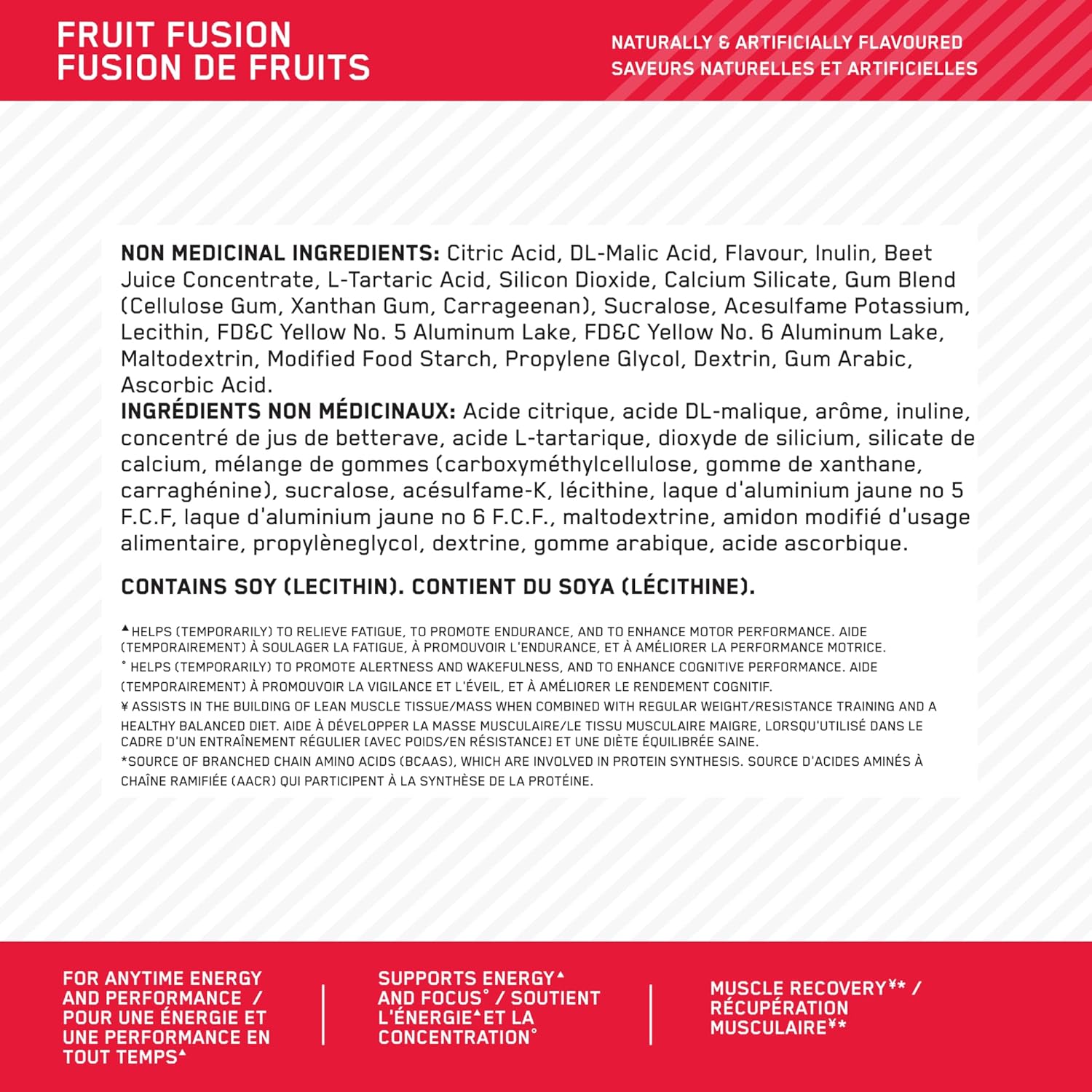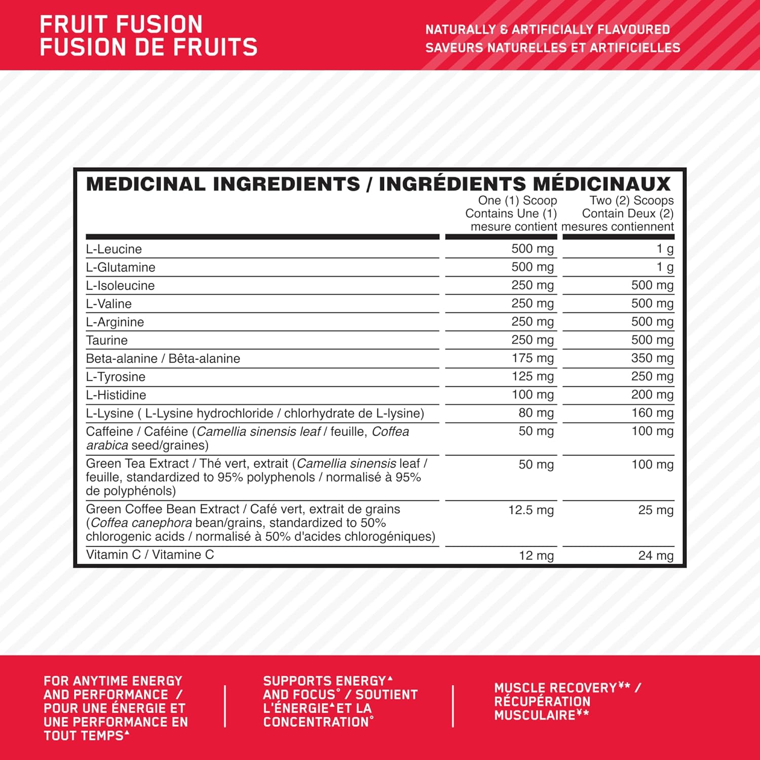 Optimum Nutrition 氨基能量粉:運動前和隨時補充能量,含綠茶、綠咖啡萃取 + BCAA - 水果融合:30 份 [270 克](包裝可能有所不同)