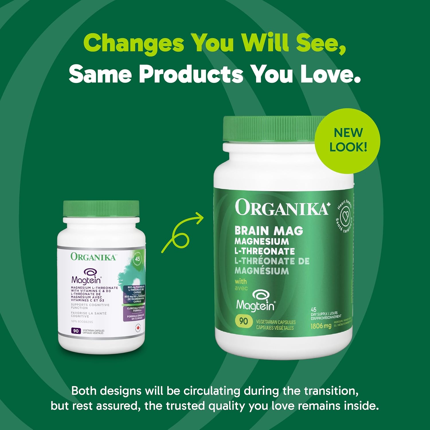 Organika Brain Mag- Magtein 鎂 L-蘇糖酸鹽,含維生素 C 和 D3 - 支持認知功能,經臨床研究,900 毫克鎂 - 90 粒膠囊