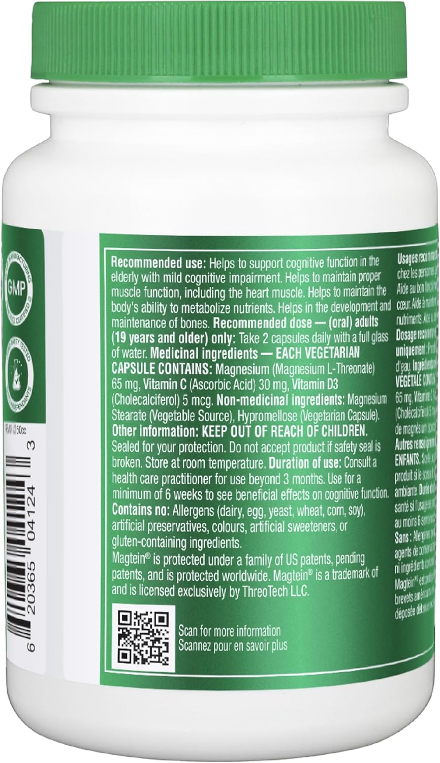 鎂蛋白,含維生素C和維生素D3。這款獨特的配方旨在滋養您的身心,將鎂蛋白的認知增強功效、維生素C的免疫增強功效以及維生素D3的骨骼強化功效完美結合。每粒膠囊都能為您的大腦提供所需的支持,同時增強您身體的天然防禦能力。