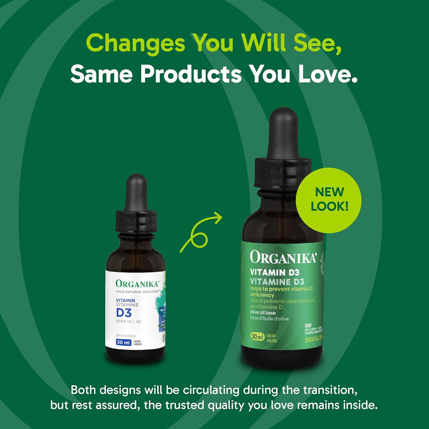 Organika 加拿大製造維生素 D3 液體 2500IU - 橄欖油基底,免疫系統支持 - 30ml