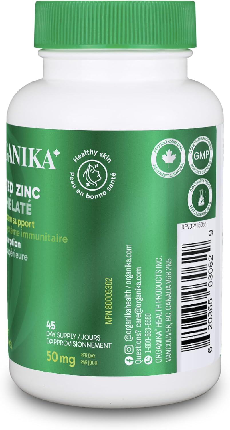 Organika 螯合鋅提供這種重要礦物質的強效且耐受性良好的劑量,幫助身體抵抗感染,且不會引起胃部不適。這種螯合鋅易於被人體吸收。