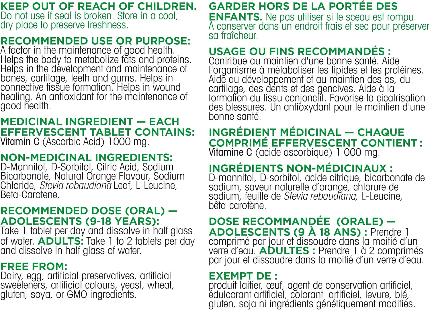 Organika Instant-C 泡騰片 - 橙味 - 1000 毫克維生素 C,免疫支持片 8 管 x 10 片