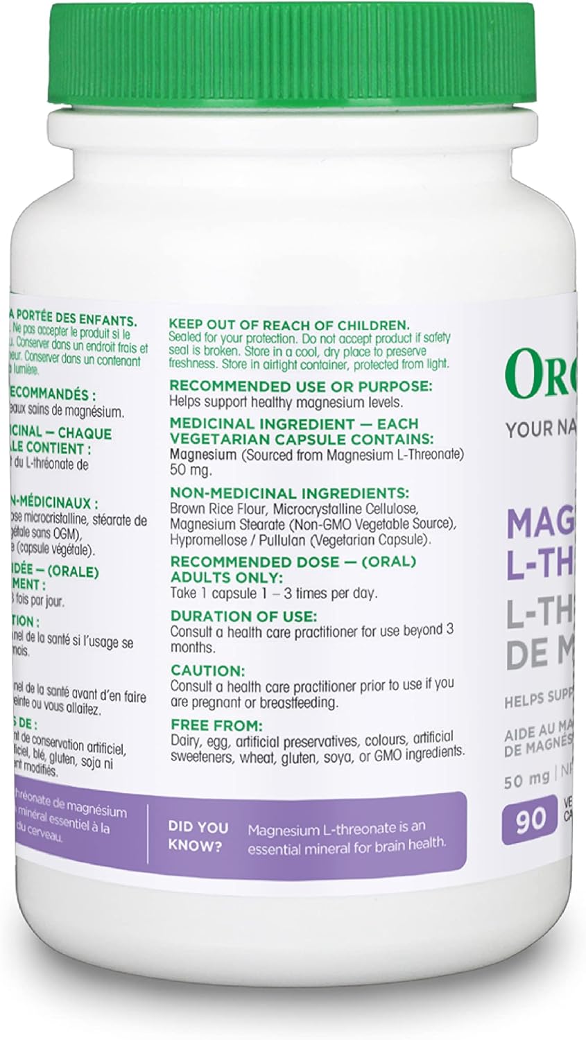 Organika L-蘇糖酸鎂 - 高吸收率,提高鎂含量 - 90粒膠囊
