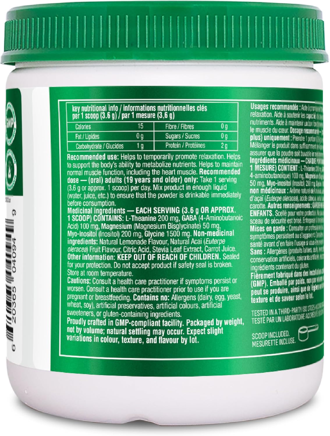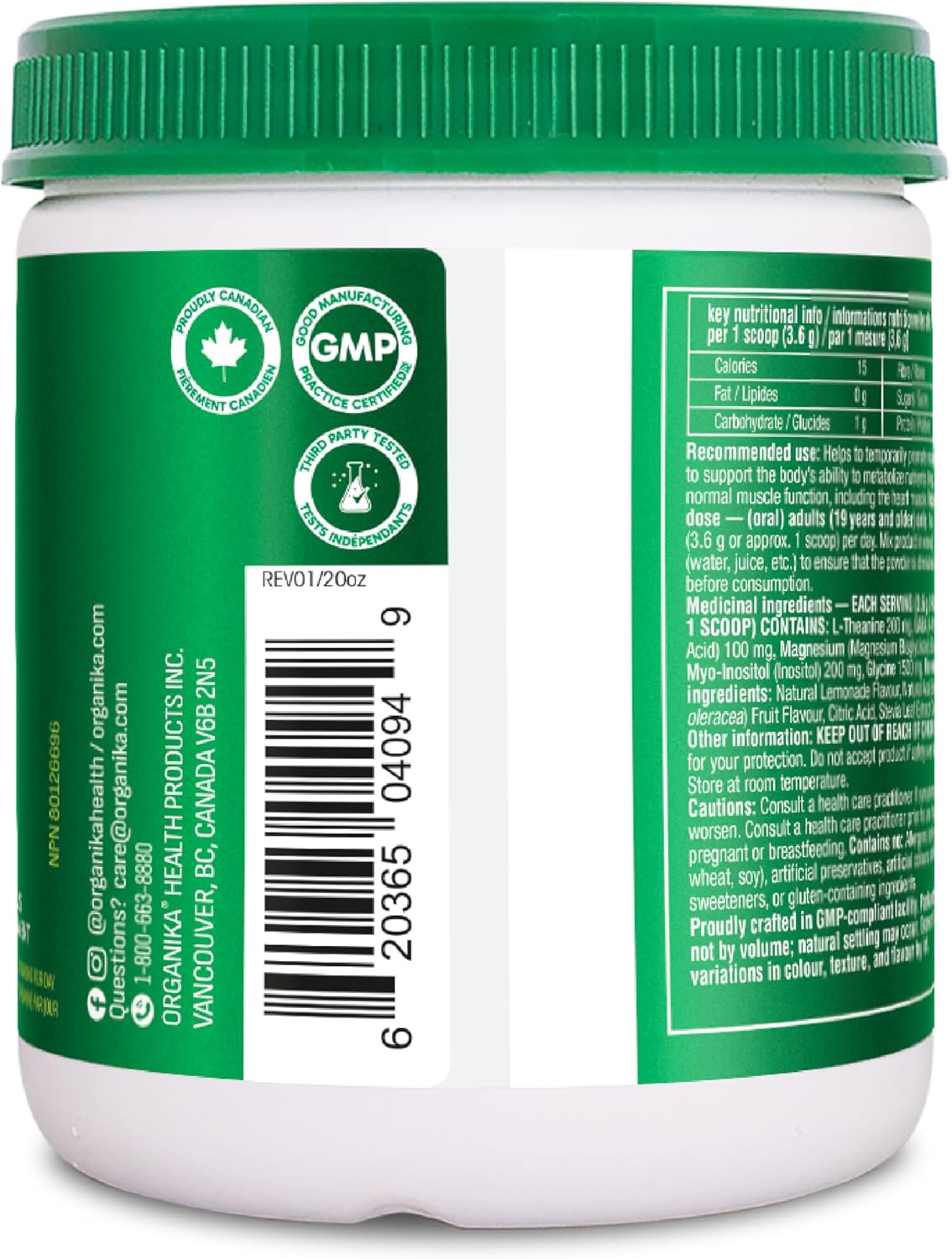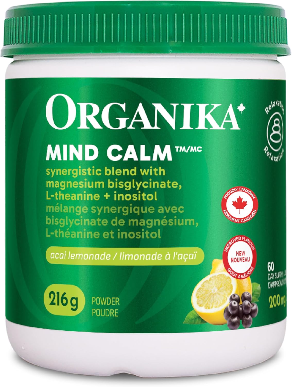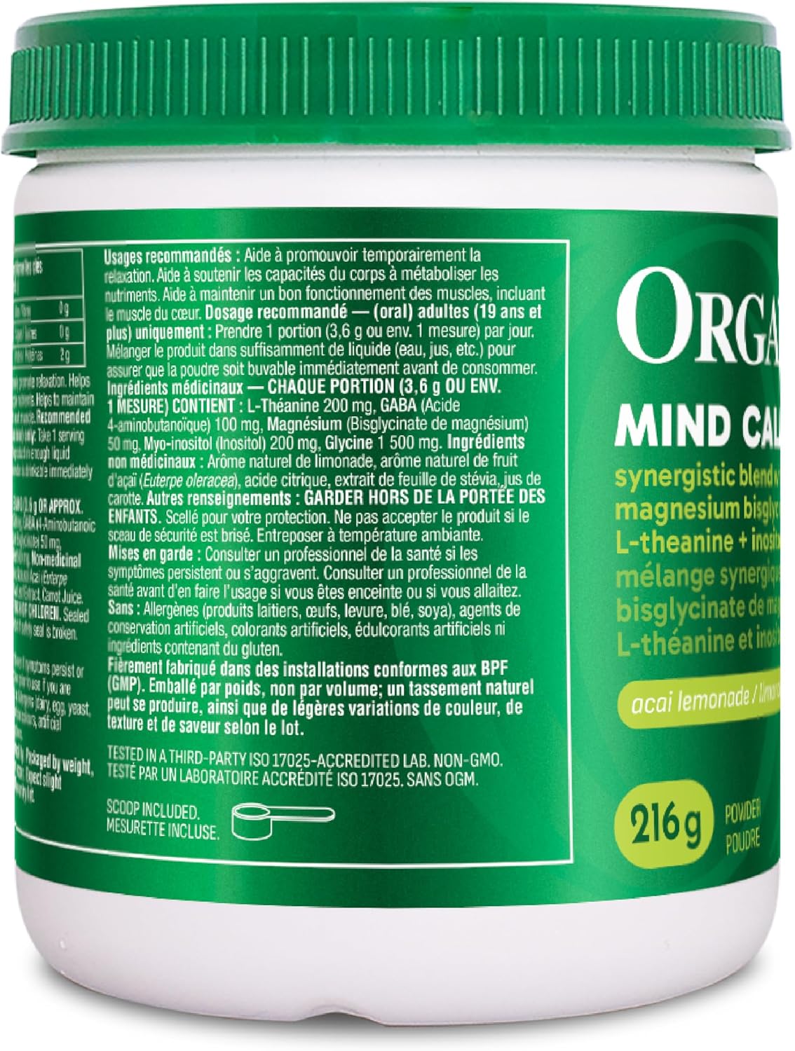 Organika 心靈鎮靜粉 - 含甘氨酸鎂、L-茶氨酸、GABA、肌醇 - 促進放鬆和鎮靜,不引起困倦 - 巴西莓檸檬水口味 - 216 克