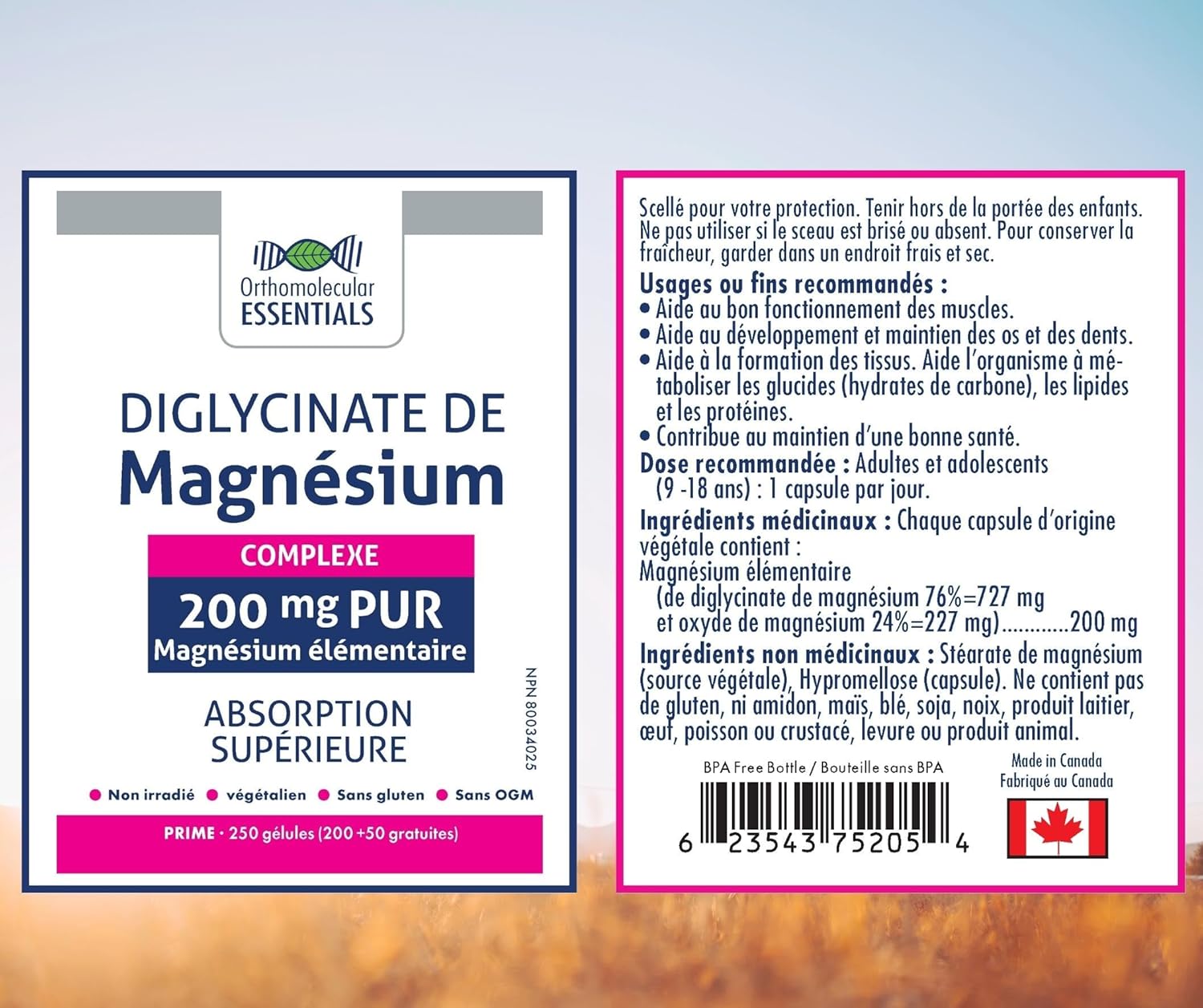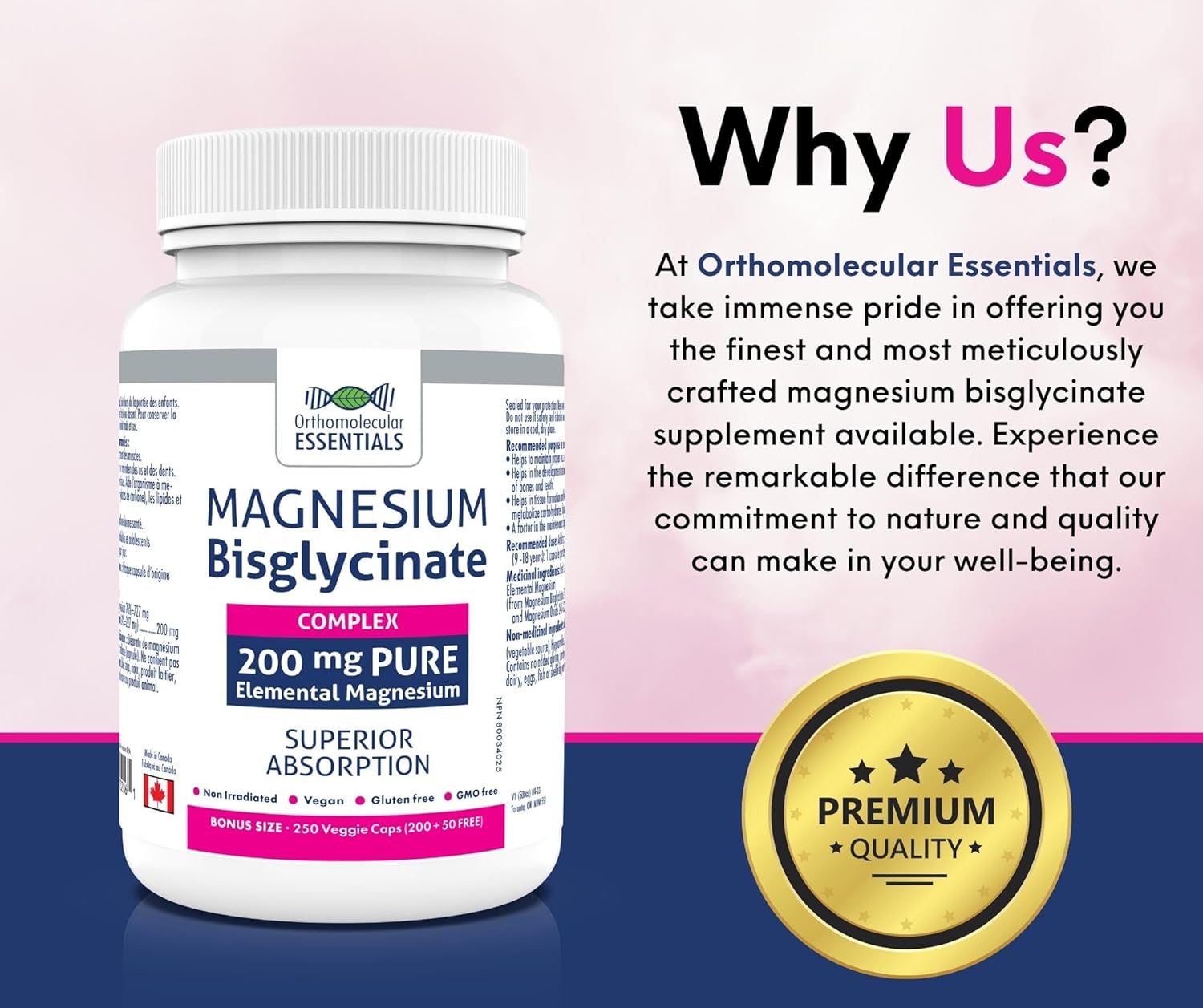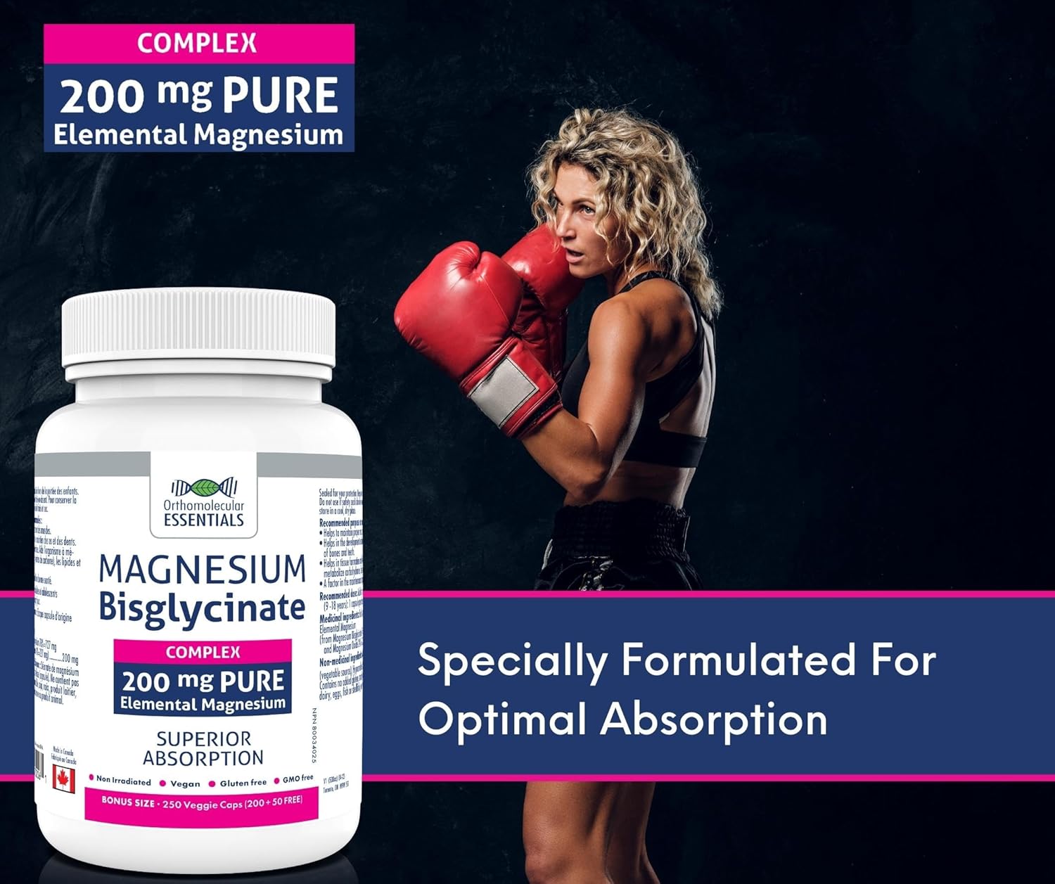正分子必需品 – 雙甘氨酸鎂複合物 200 毫克,250 粒素食膠囊(250 天用量)– 元素鎂,有助於睡眠、骨骼健康和神經功能 – 非基因改造和無麩質