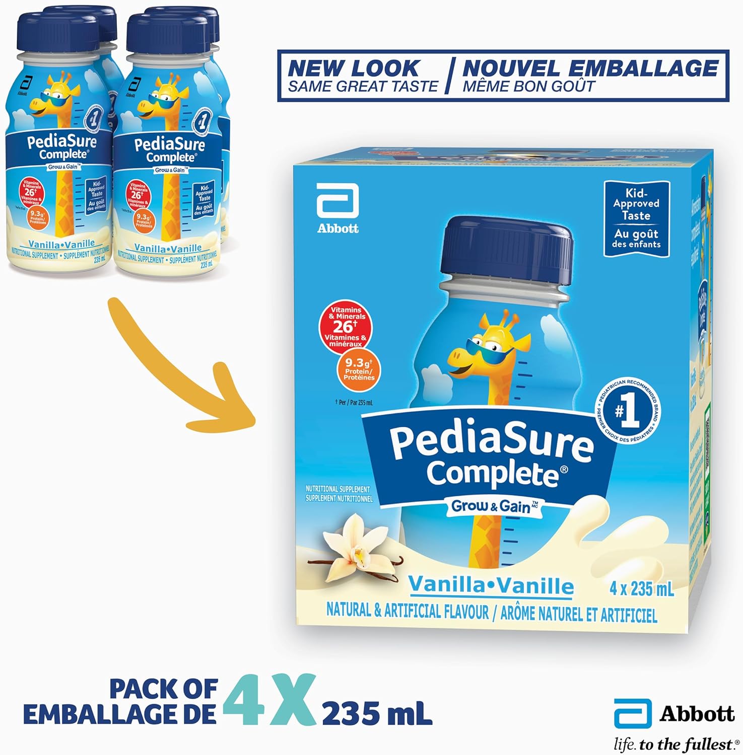 PediaSure Complete,營養補充劑,兒童營養奶昔,可作為早餐飲品,香草味,4 x 235 毫升瓶裝