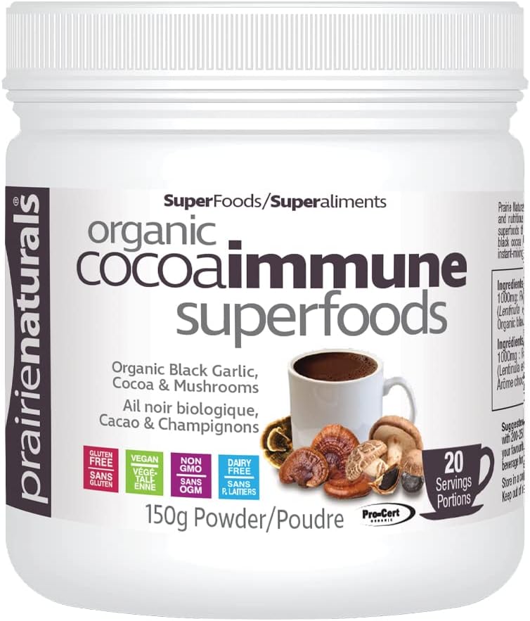 Prairie Naturals 有機可可免疫超級食品,含有機黑蒜、可可和蘑菇 - 150 克