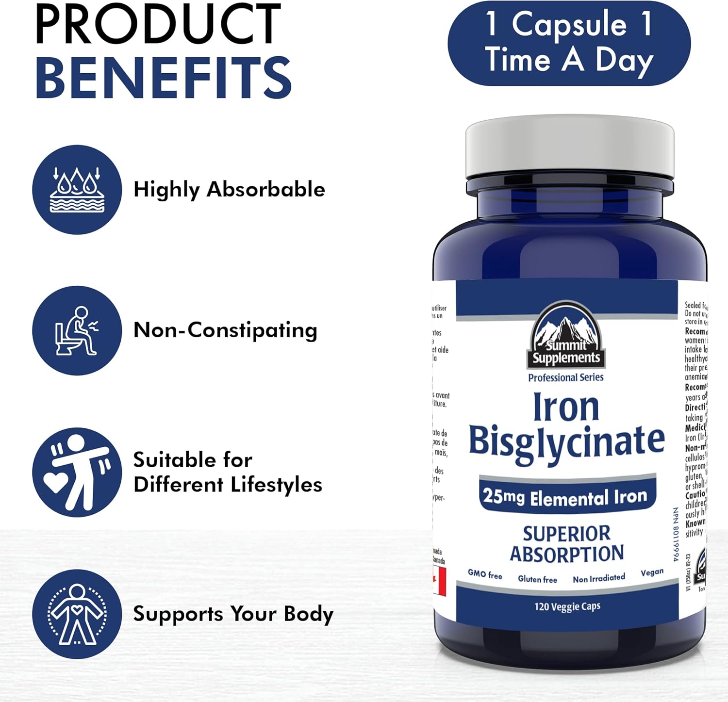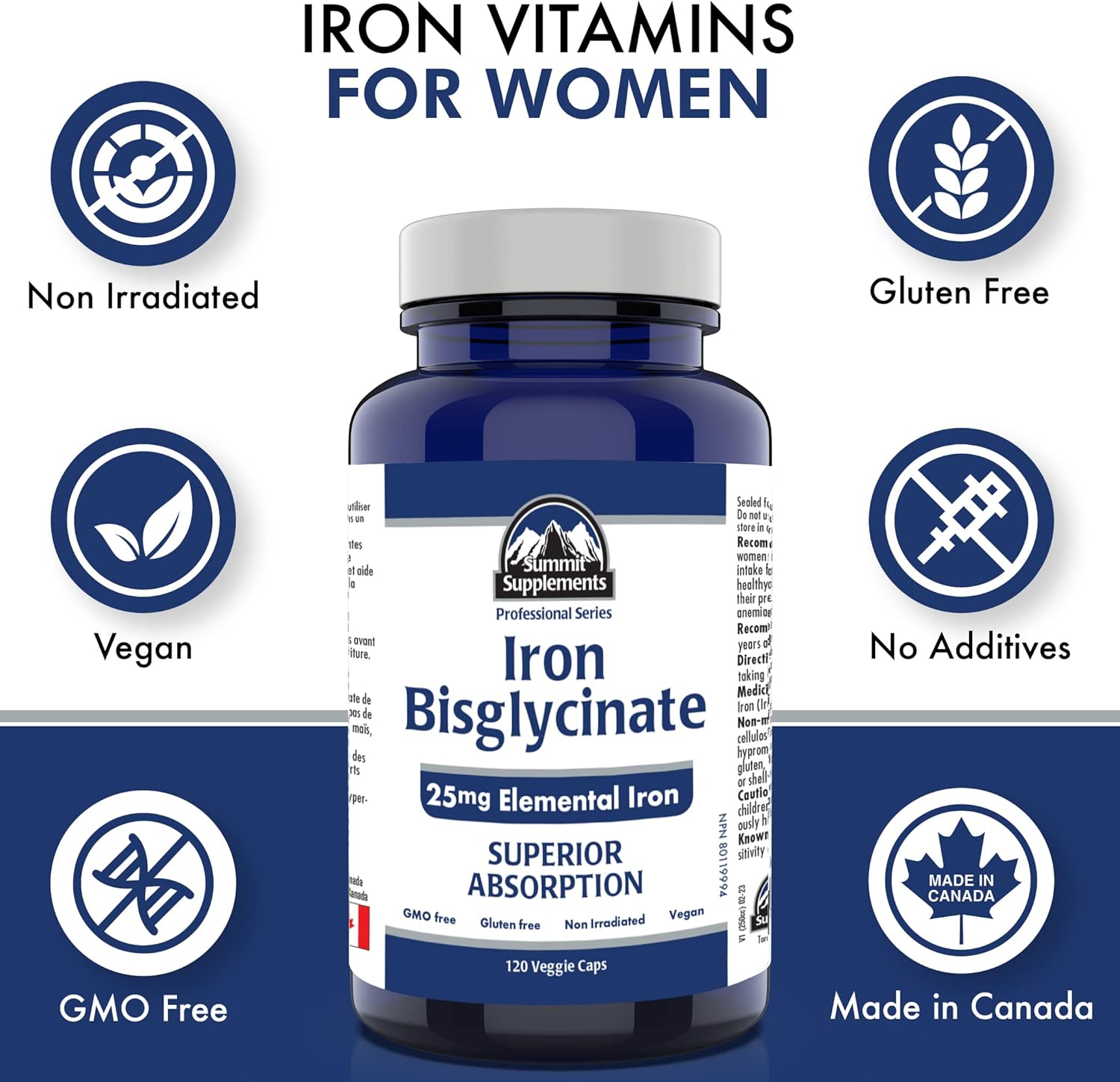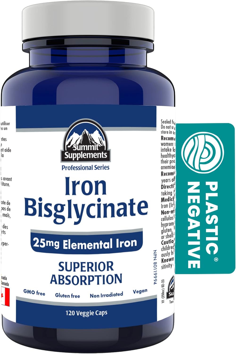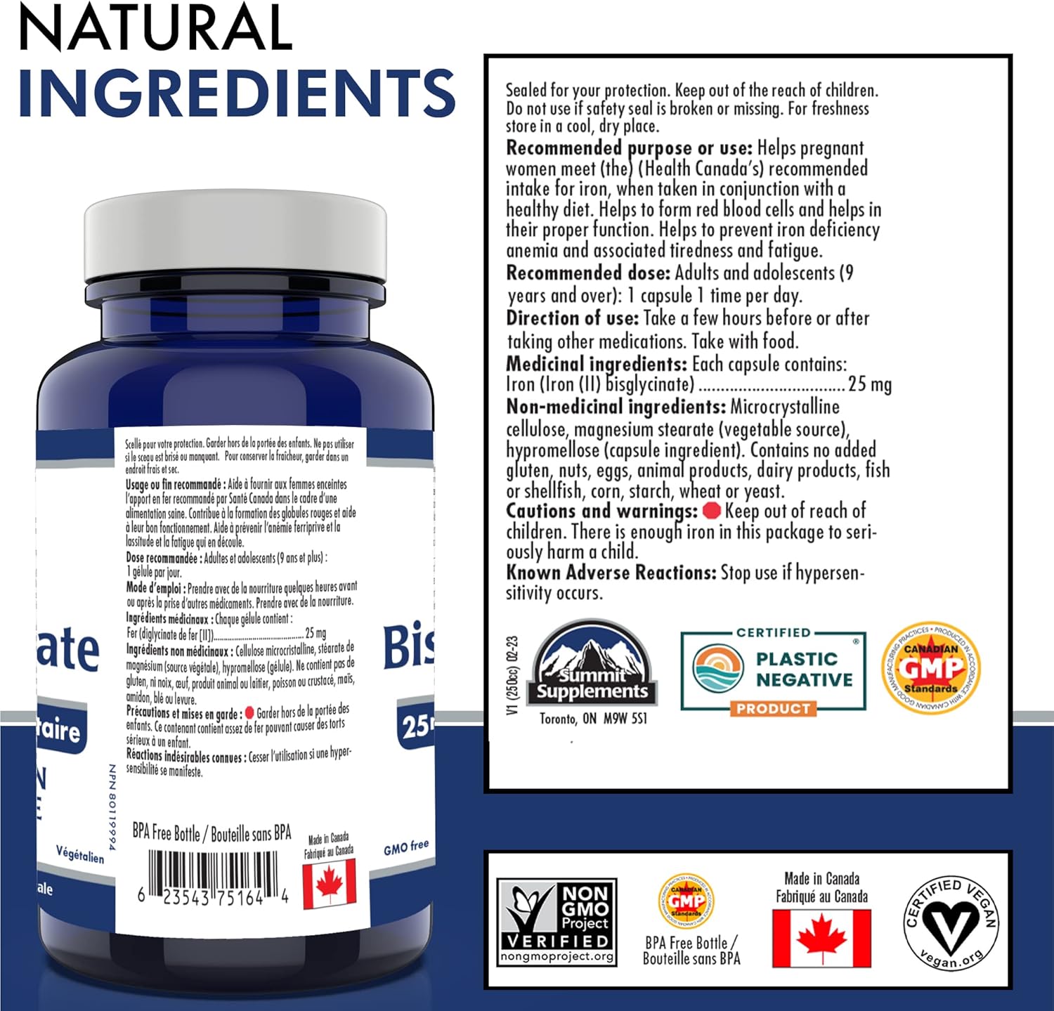 加拿大製造,抗塑膠污染 - 甘氨酸鐵補充劑,120粒素食膠囊,120天用量 - 25毫克元素鐵缺乏症補充劑 - 經第三方測試 - 加拿大配方和製造