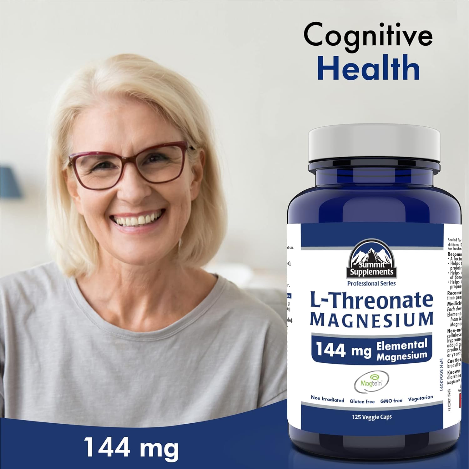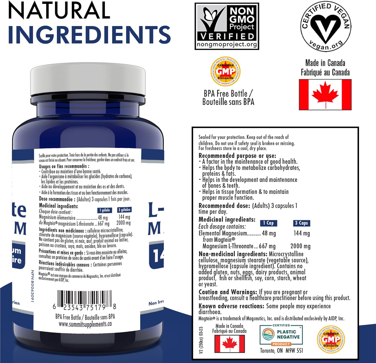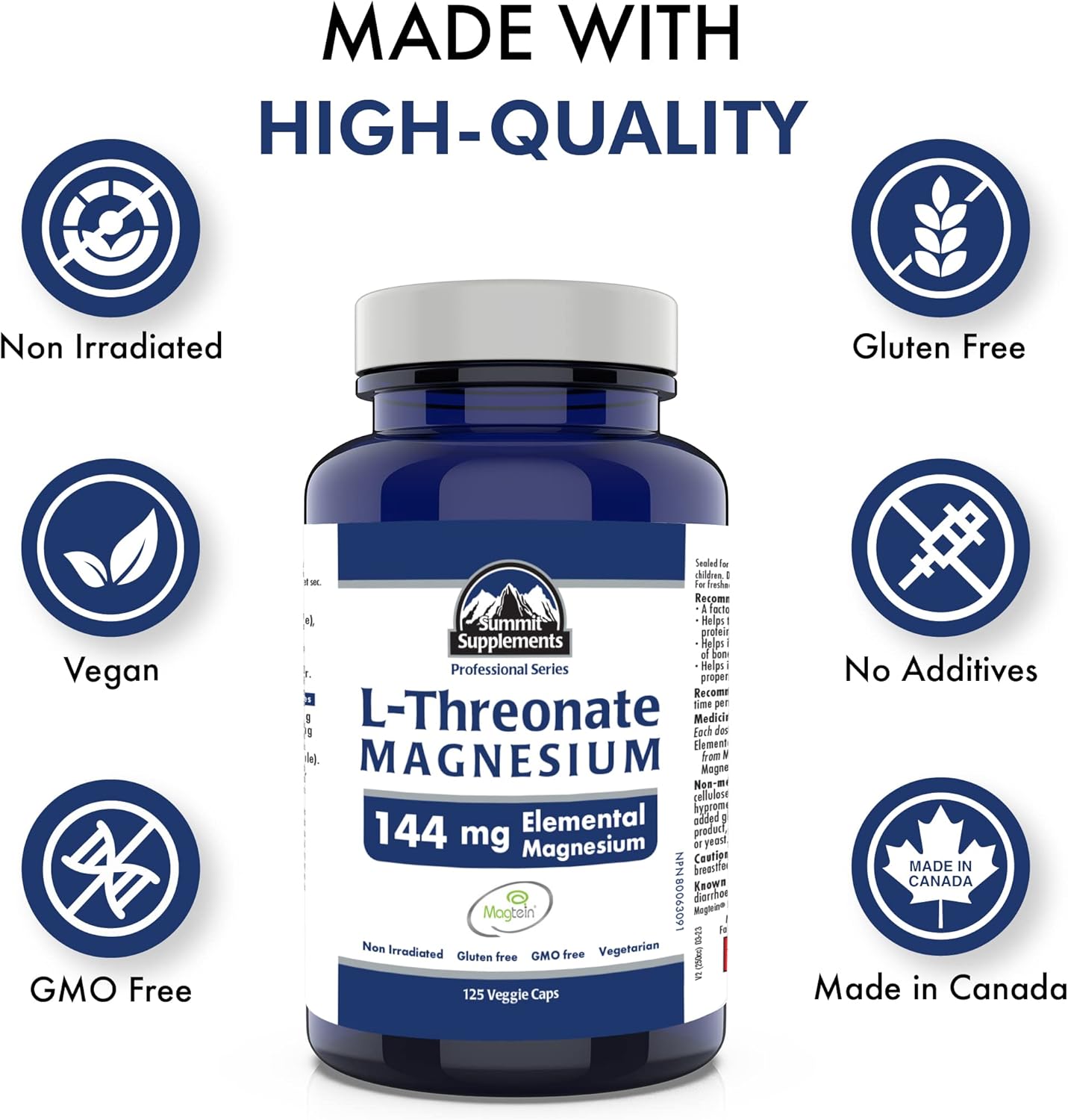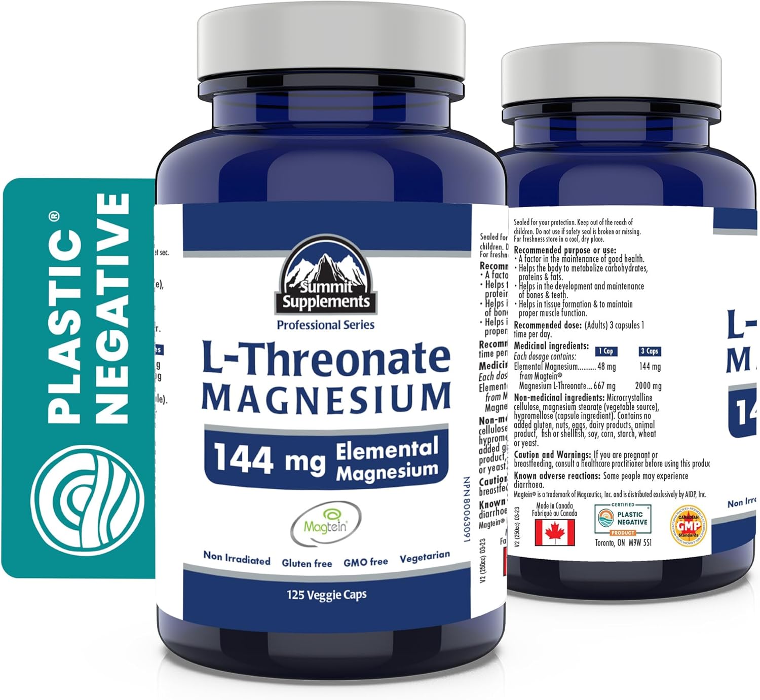 加拿大製造,抗塑膠污染 - Magtein L-蘇糖酸鎂 125 粒素食膠囊,41 天用量 - 促進大腦健康,促進健康睡眠和放鬆 - 經第三方測試 - 加拿大配方和製造