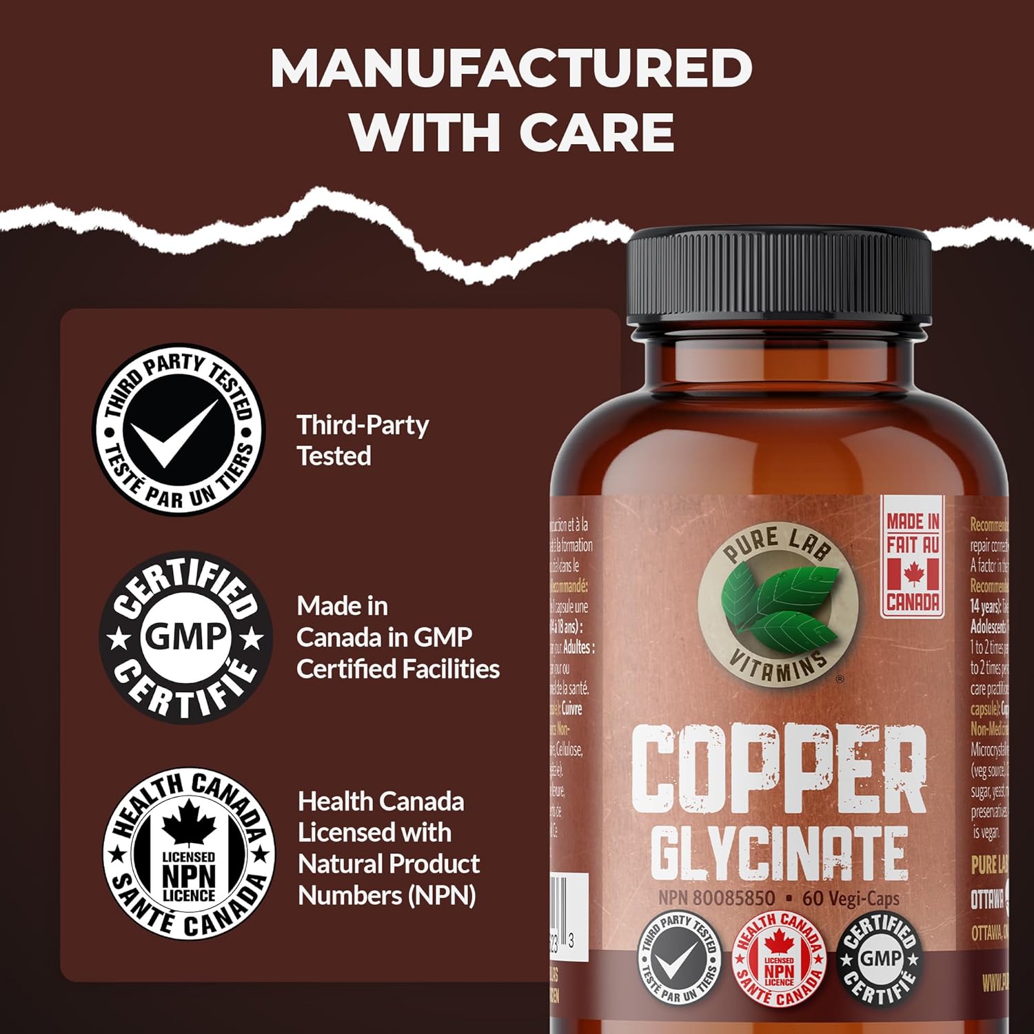 Pure Lab Vitamins 甘氨酸銅 1毫克 - 60 粒素食膠囊