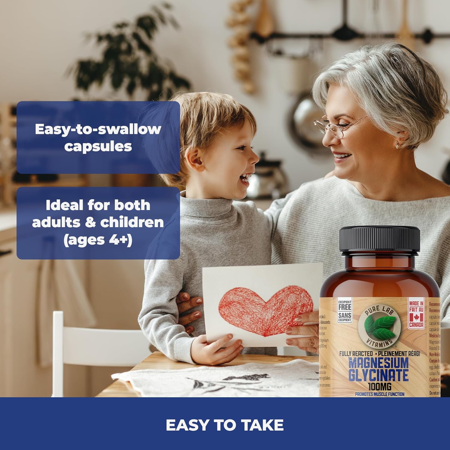 Pure Lab Vitamins 甘胺酸鎂完全反應型 100 毫克 - 60 粒膠囊 - 支持肌肉功能