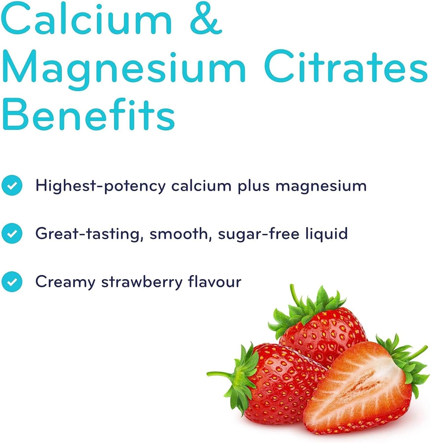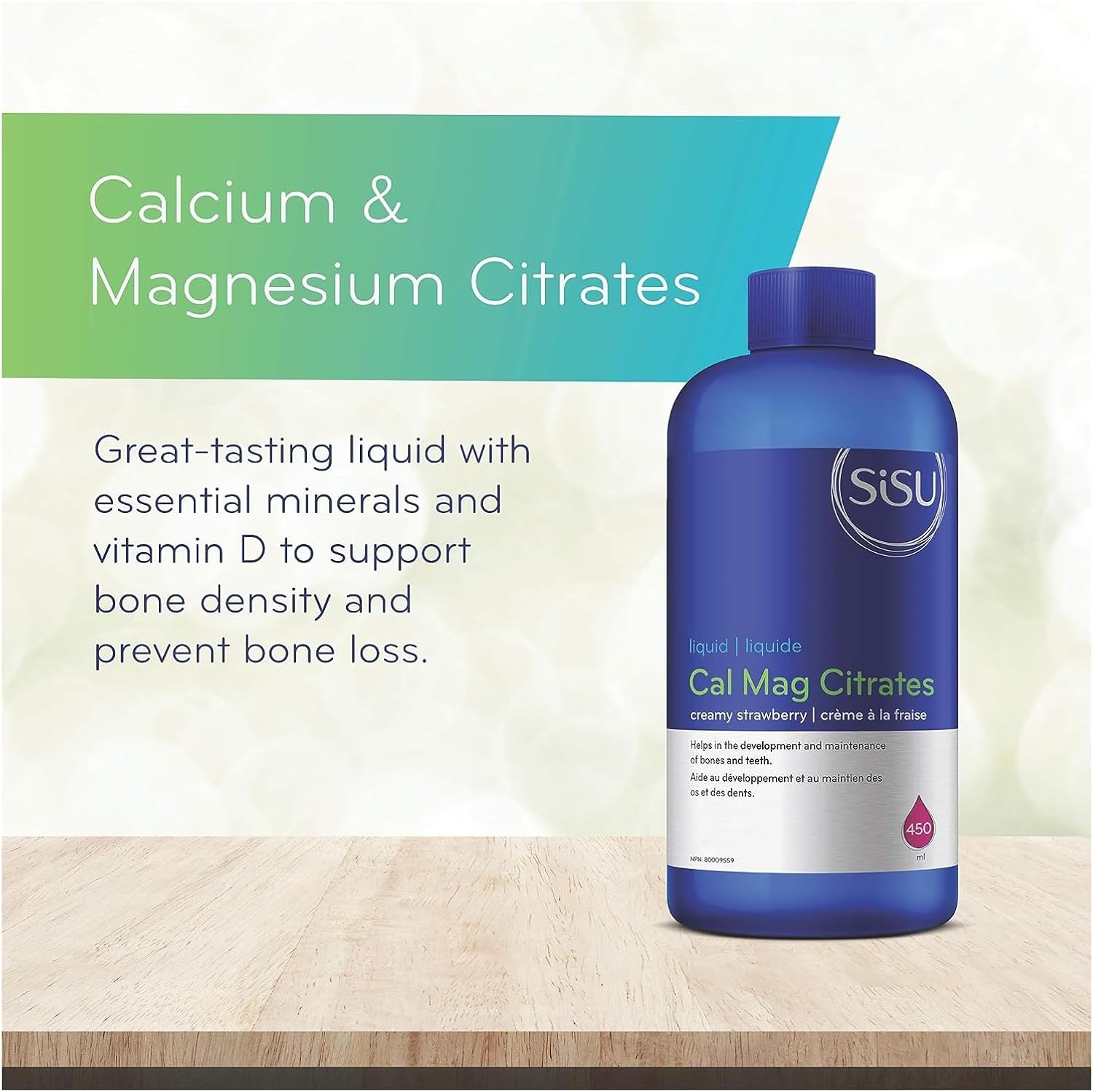 SISU 檸檬酸鈣鎂片,含維生素 D3 | 450 毫升 | 高效鈣鎂無糖液體,含 500 國際單位維生素 D | 適合兒童和成人 | 無麩質、不含乳製品、草莓味