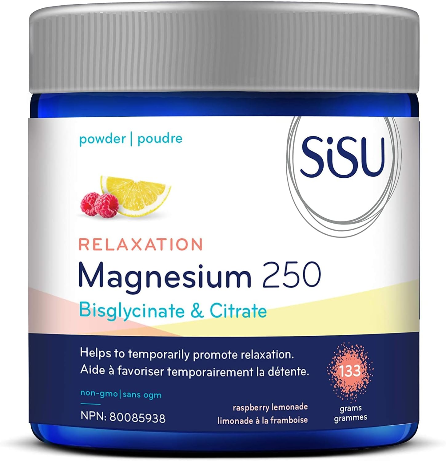 SISU 鎂 250(雙)甘氨酸和檸檬酸鹽粉末 | 有助於暫時促進放鬆,最大限度地降低壓力水平並改善睡眠品質 | 包含 GABA 和 L-茶氨酸 | 非轉基因,無麩質,覆盆子 133 克