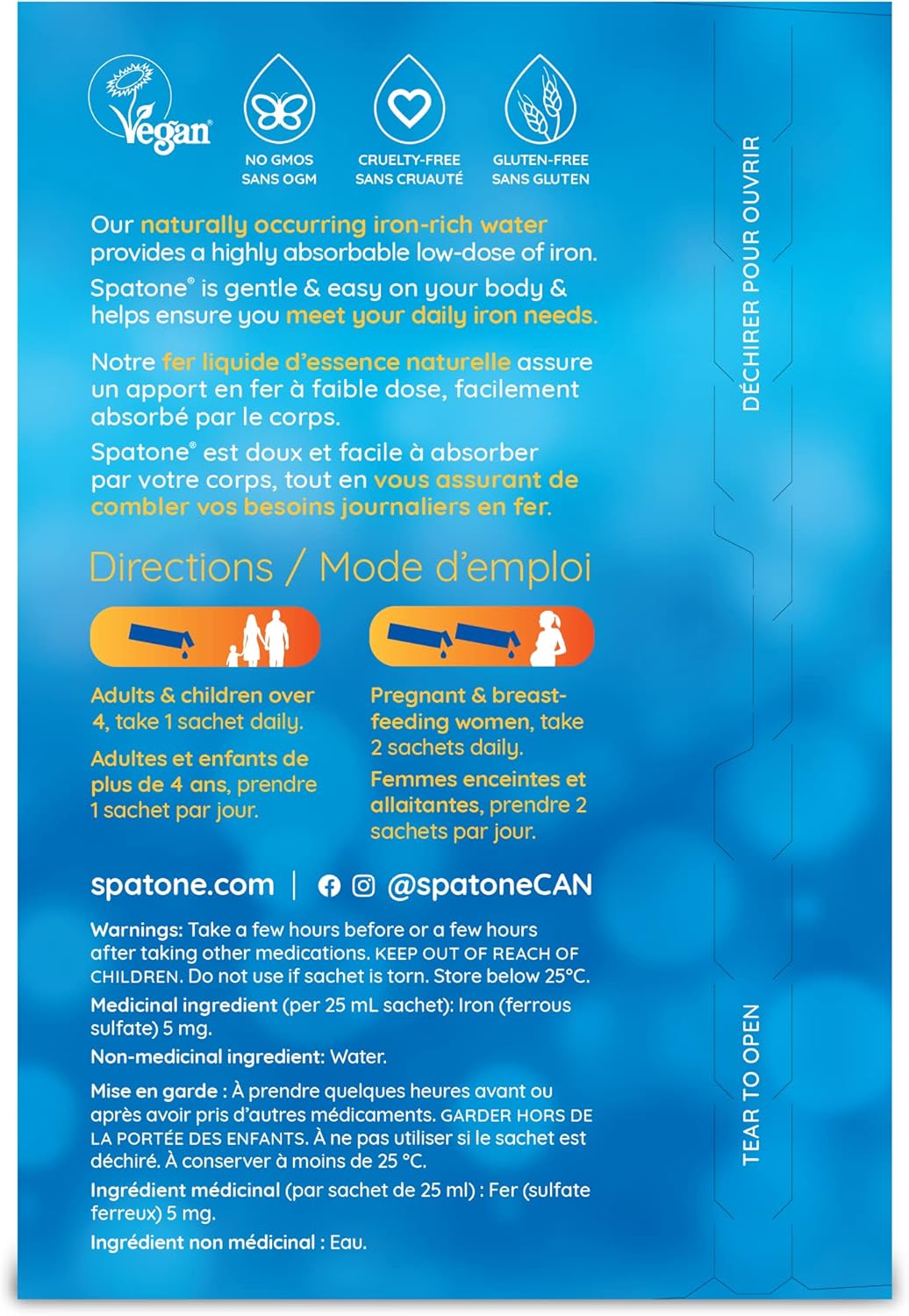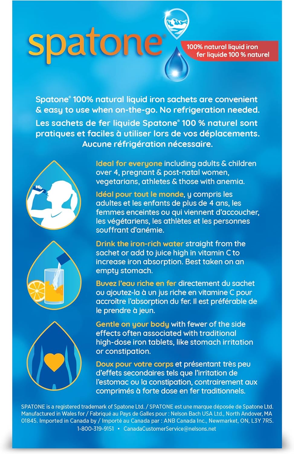 Spatone 液態鐵經科學驗證,可提供高生物利用度的鐵。這種鐵天然存在於水中,因此易於被人體溫和吸收,不會像其他補鐵產品那樣產生胃部刺激和便秘等副作用。