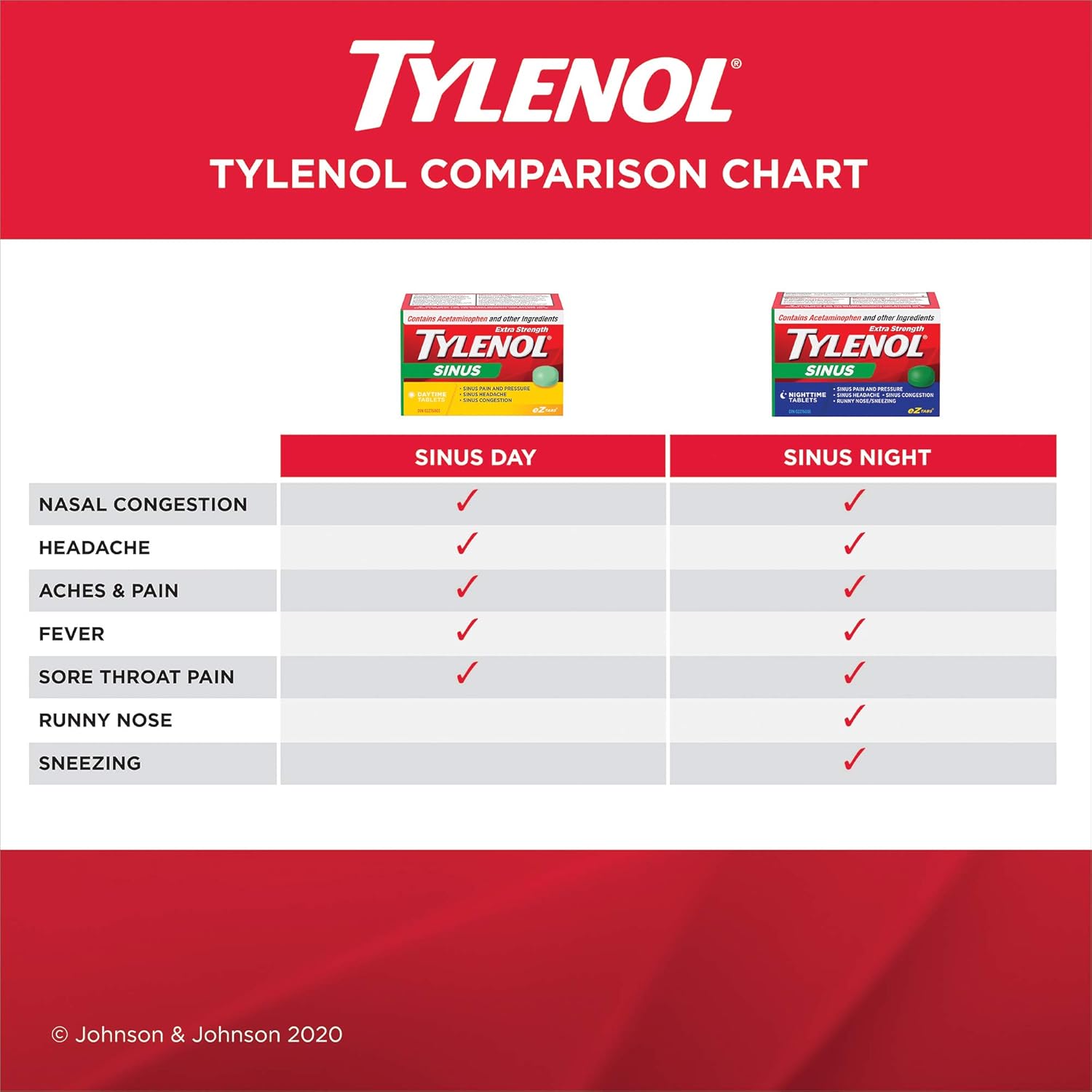 泰諾強效日間鼻竇片有助於緩解您日間鼻竇症狀。有效緩解感冒或流感引起的鼻塞、鼻竇疼痛和壓迫感、發燒、喉嚨痛和頭痛等症狀,讓您恢復正常,無論您的日常生活如何。這些藥片還能有效緩解頭痛和發燒疼痛。每片綠色藥片含有500毫克對乙醯氨基酚,有助於緩解疼痛和退燒,以及5毫克鹽酸苯腎上腺素,用於緩解鼻塞。採用易於吞嚥的片劑形式。成人及12歲以上兒童,視需要每4小時服用1-2片日間藥片。 24小時內請勿超過8片。