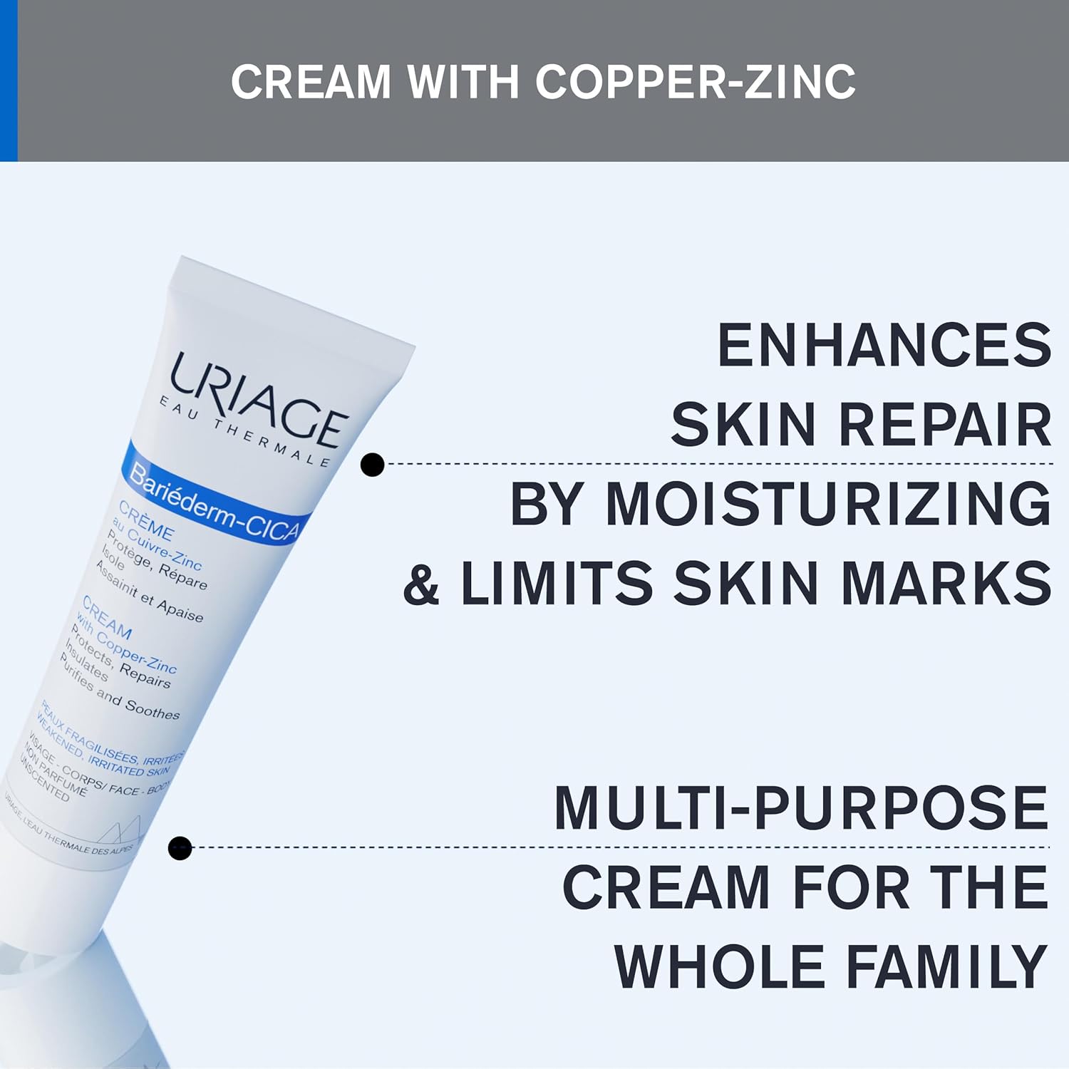 Uriage Bariederm-CICA 銅鋅修復霜 - 多用途霜,可減少脆弱和受刺激皮膚的痕跡 - 適合全家人的臉部和身體保濕霜 - 100ml