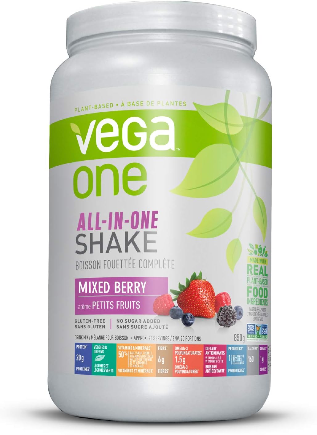 Vega Sport 優質蛋白粉,莓果味(19 份,801 克)-植物性純素蛋白粉,含支鏈胺基酸、胺基酸、酸櫻桃、非乳清蛋白、酮類友善、無麩質、非基因改造成分。使用 Vega Sport Protein 強身健體。 Vega Sport Protein 富含蛋白質、支鏈胺基酸、酸櫻桃和麩醯胺酸,可幫助您鍛鍊肌肉,並在運動後恢復更強的體能。每份含有 30 克植物蛋白(來自豌豆、南瓜籽、有機葵花籽和苜蓿蛋白),以及 6 克支鏈胺基酸和 10 億 CFU 益生菌 [凝結芽孢桿菌]。 Vega Sport Protein 經過 Informed-Choice 認證、非基因改造項目驗證、純素認證和無麩質配方,不添加糖,不含人工香料、色素或甜味劑。運動後搖勻,享用美味的香草、巧克力、摩卡和莓果口味。不是低熱量食物。 Vega One 多合一植物性蛋白粉漿果(20 份,850 克)- 植物性素食蛋白,非乳製品,無麩質,非基因改造Vega one 多元植物性蛋白粉漿果(20 份,1.88 磅)- 植物性素食蛋白,非乳製品,無麩質,非基因改造。