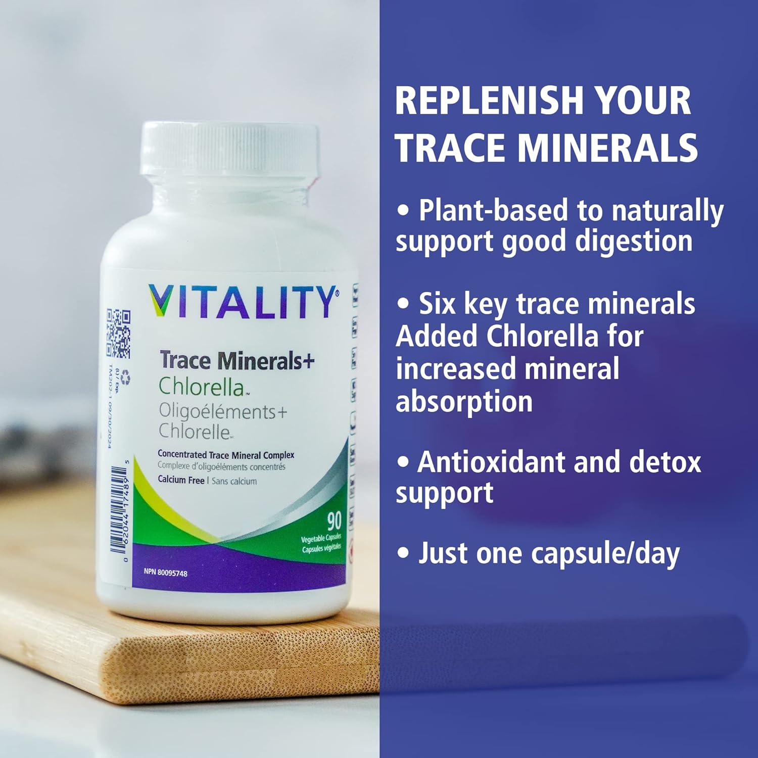 VITALITY 微量礦物質+小球藻補充最佳健康所需的關鍵微量礦物質。獨特配方,蘊含小球藻,增強排毒功效,促進礦物質吸收。每日一粒,方便服用,避免其他礦物質的競爭。非常適合對液體微量礦物質味道敏感的人士。所有 VITALITY 產品均在加拿大製造,並在 600 多家天然健康零售商處銷售。