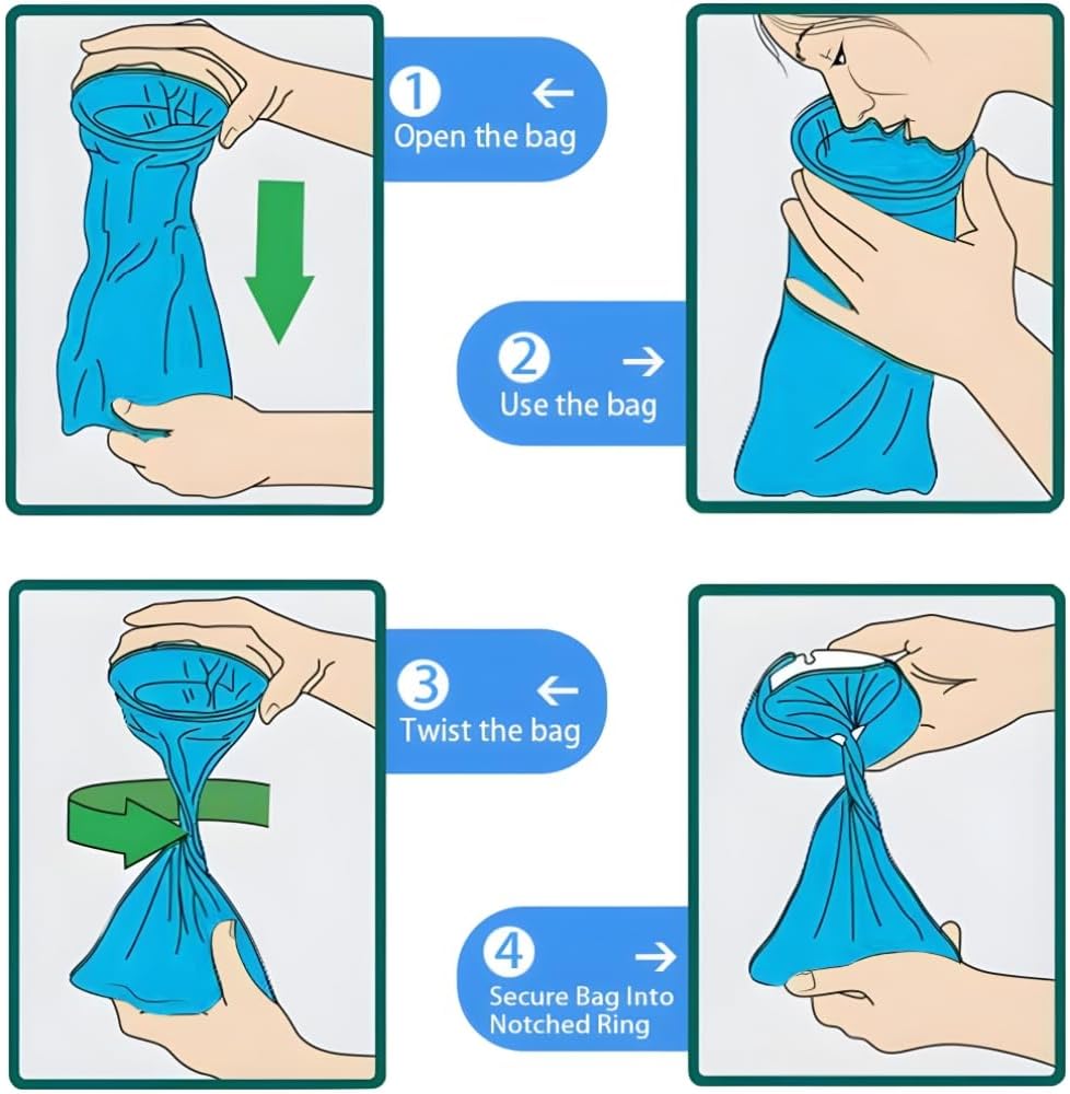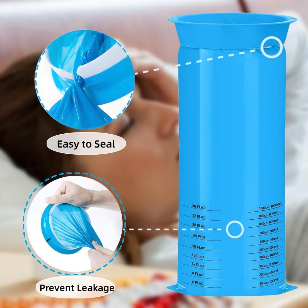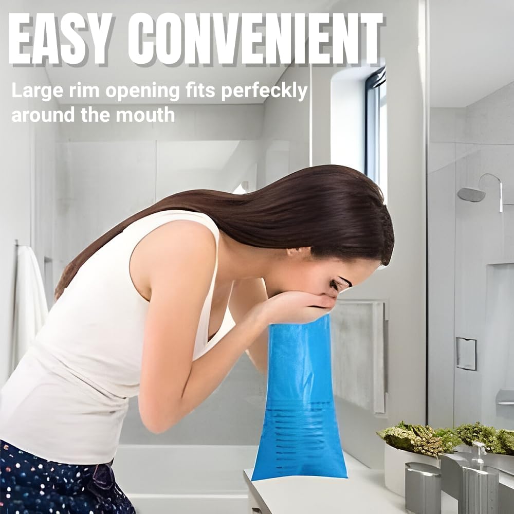1000毫升大容量嘔吐袋,方便使用。我們的嘔吐袋品質優良,採用堅固耐用的材質製成,不易破損。超值裝包含60個藍色嘔吐袋。我們的拋棄式嘔吐袋適用於兒童、孕婦和司機。產品規格:展開尺寸:16.5*35公分;折疊尺寸:12.7*2.5公分;顏色:藍色