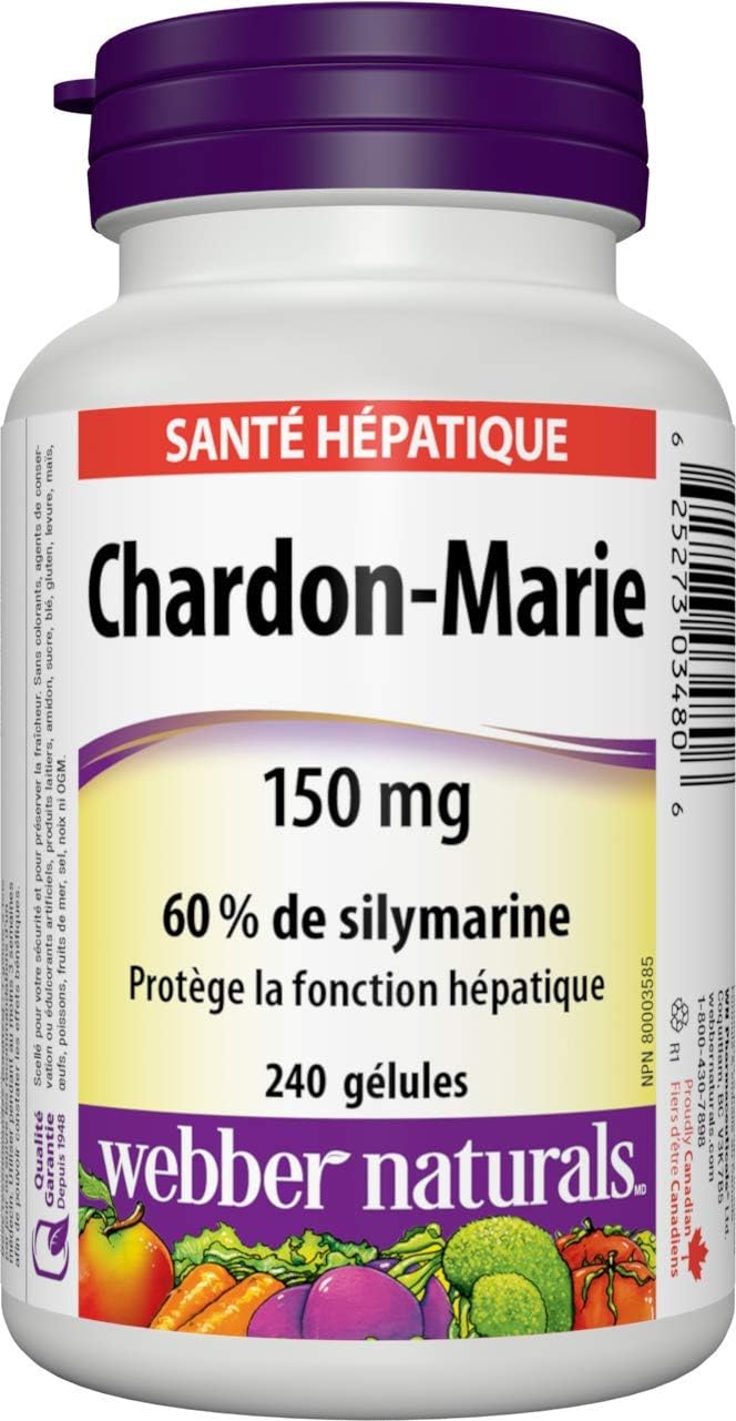 奶薊草含有名為水飛薊素的活性化合物,能夠保護並恢復肝臟功能,防止肝硬化、肝炎以及酒精或環境中有毒化學物質造成的傷害。 Webber Naturals® 的奶薊草經過濃縮和標準化處理,含有 60% 的水飛薊素,確保每瓶奶薊草都能保持一致的效力和功效。
